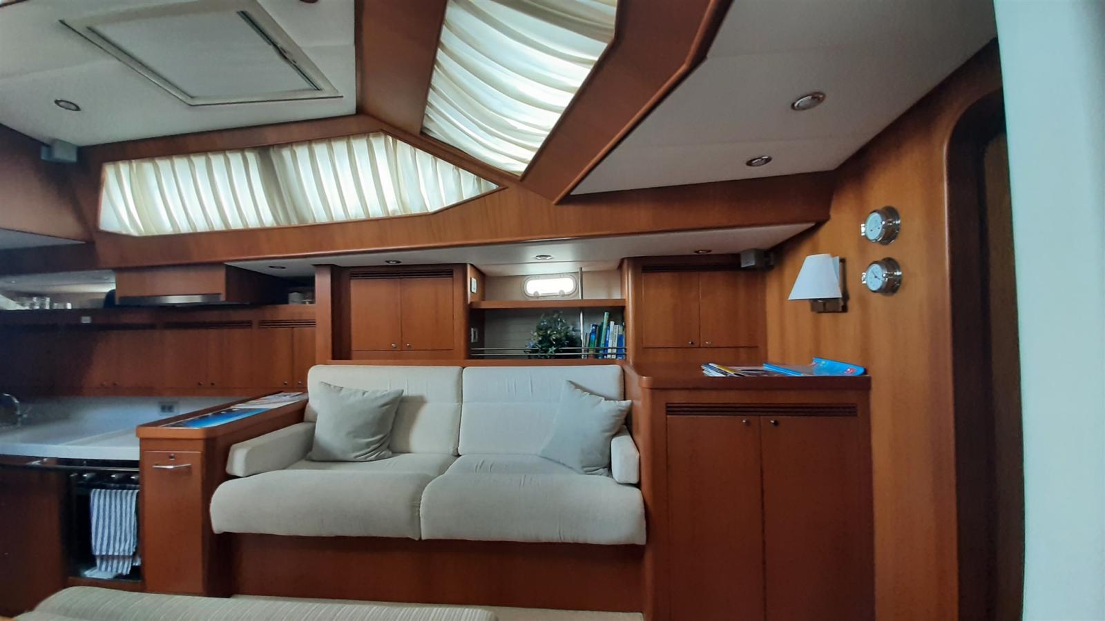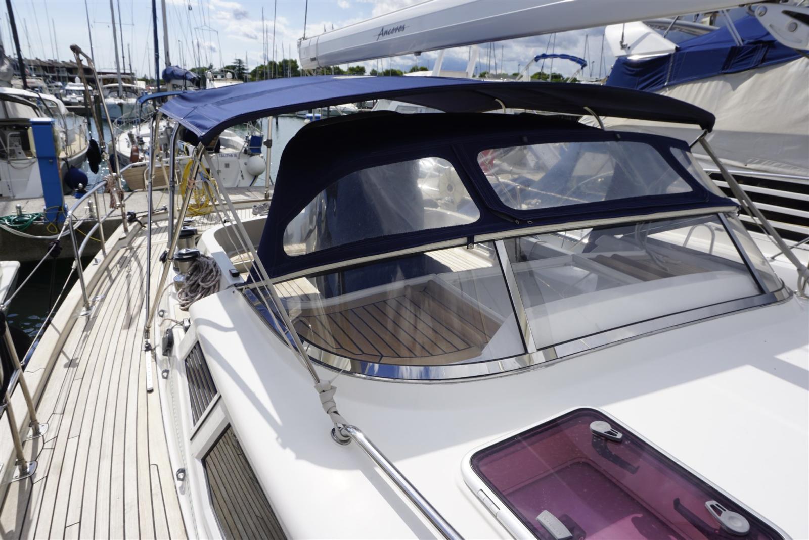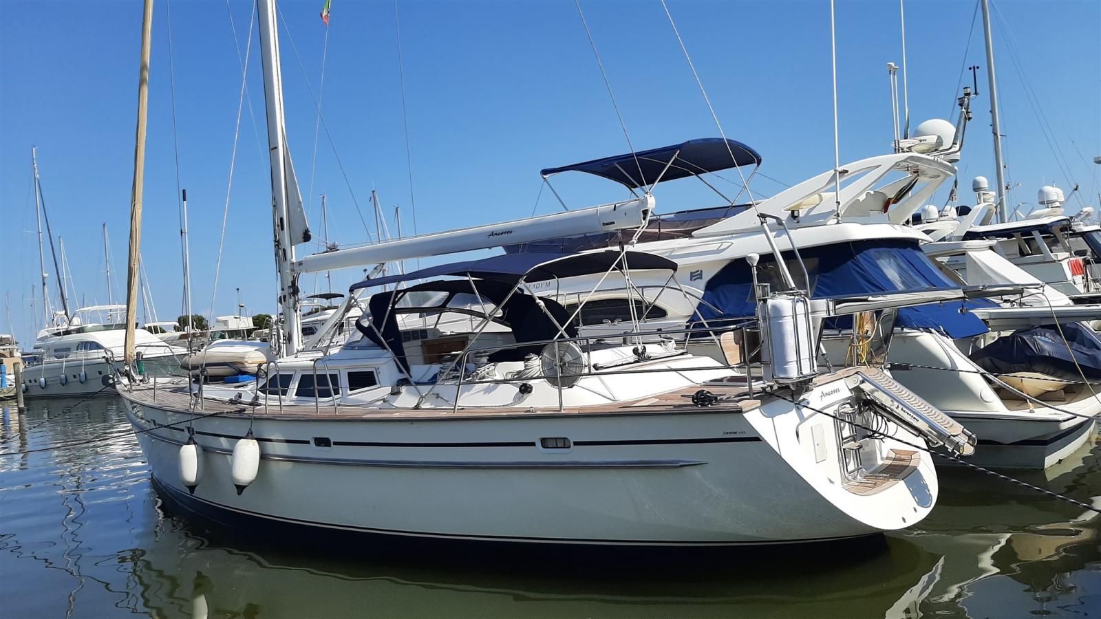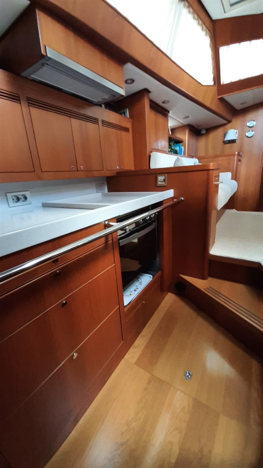Pont en bois avec bande en acier inoxydable, réflecteur radar CYCLOPS II, stroboscope et lumière tricolore au sommet du mât, tous les hublots avec stores et moustiquaires, hélice GORI à 3 pales, extracteur de fumée dans la cuisine,
