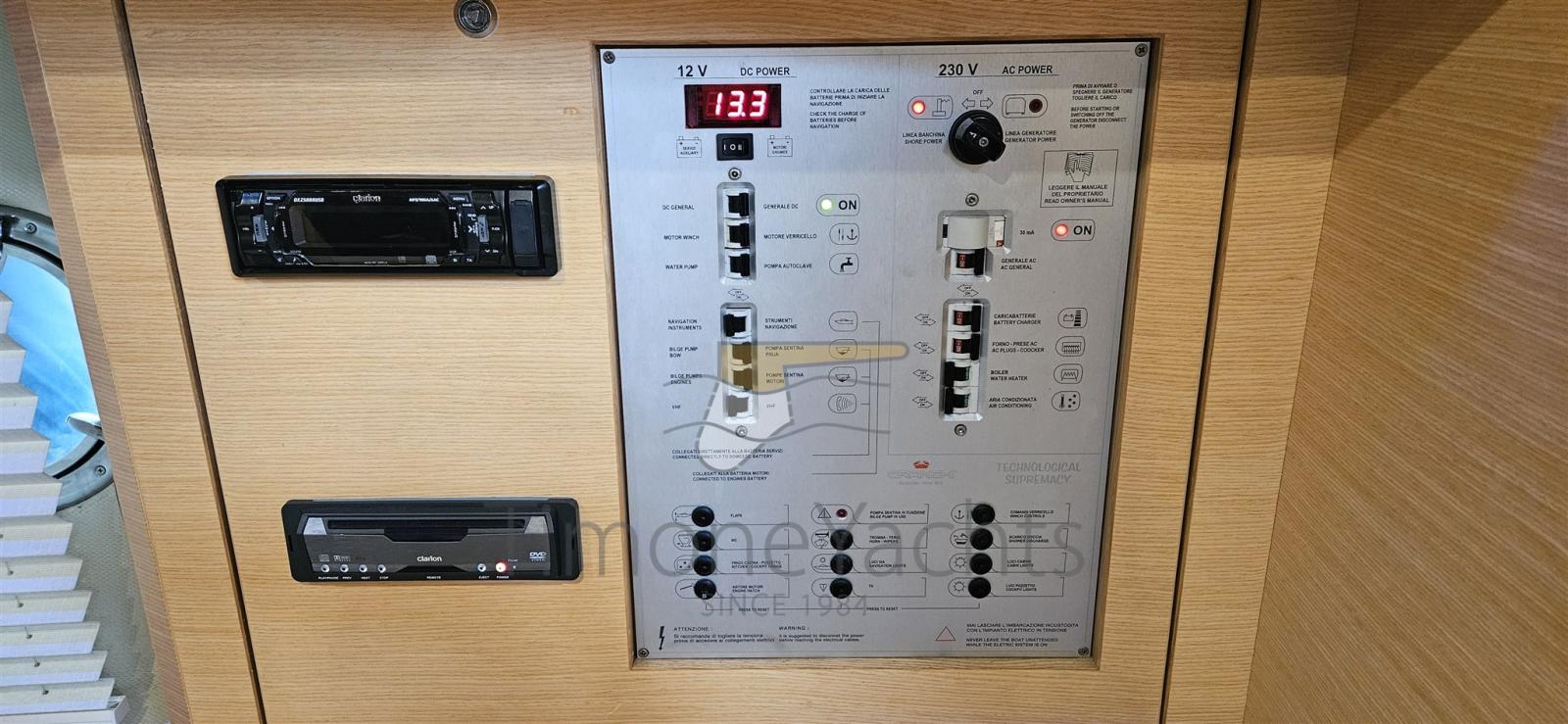 Ouverture du compartiment moteur électrique, Flaps hydrauliques, Indicateurs de flaps, Lavabo dans le cockpit, Passerelle (idraulica), Cockpit en teck.