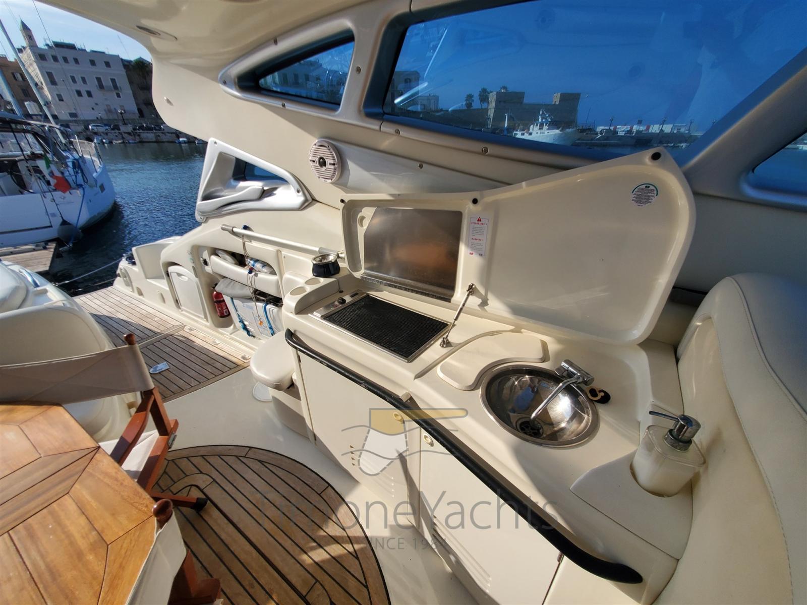 Toit rigide pouvant être ouvert électriquement, GPS Raymarine 12 pouces, antenne radar, pilote automatique, propulseur d’étrave, klaxon, phare réglable, système TV, garage à ouverture électrique, générateur de 11kw, passerelle hydraulique télescopique rétractable, double tonnage de treuil arrière, climatisation et cockpit intérieurs, cockpit et plate-forme arrière en teck, réfrigérateur externe et interne, congélateur, barbecue extérieur, toilettes électriques.