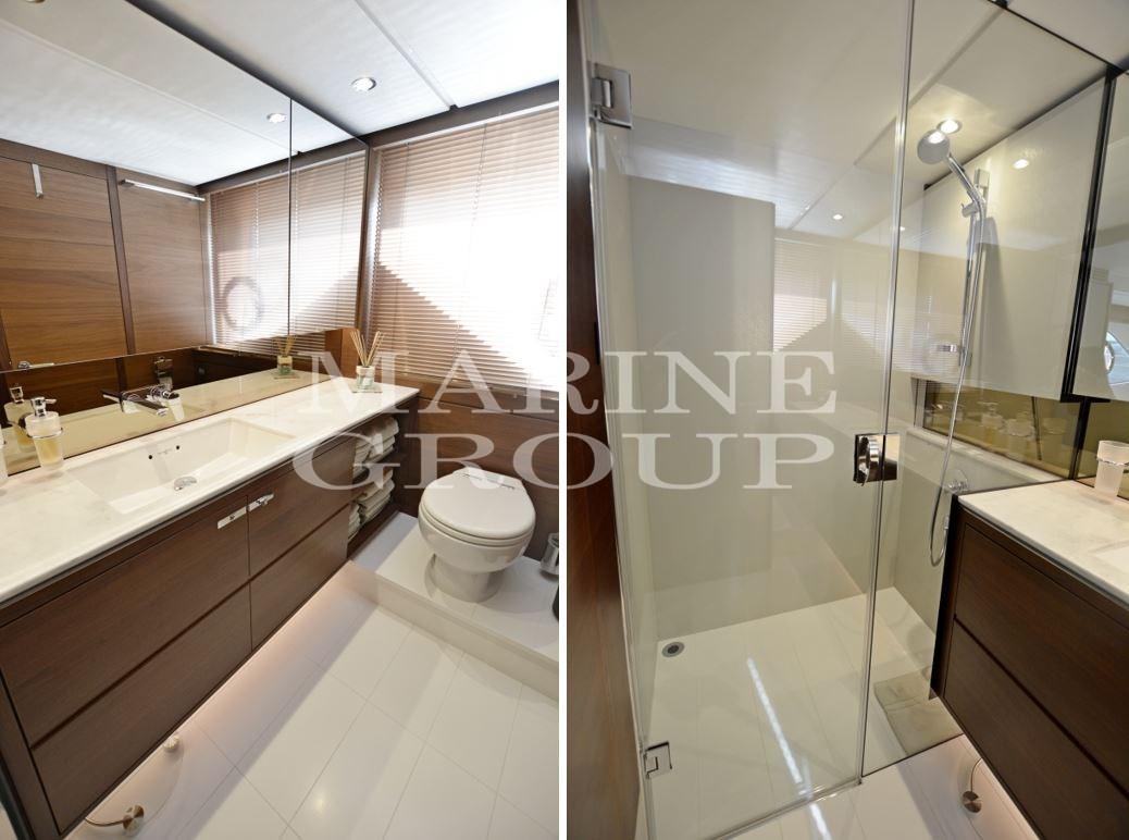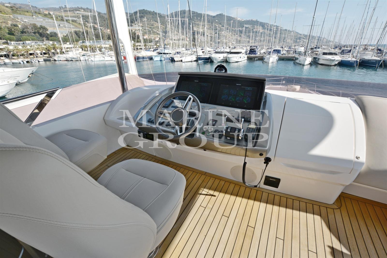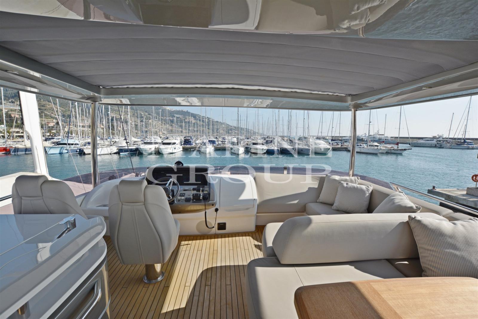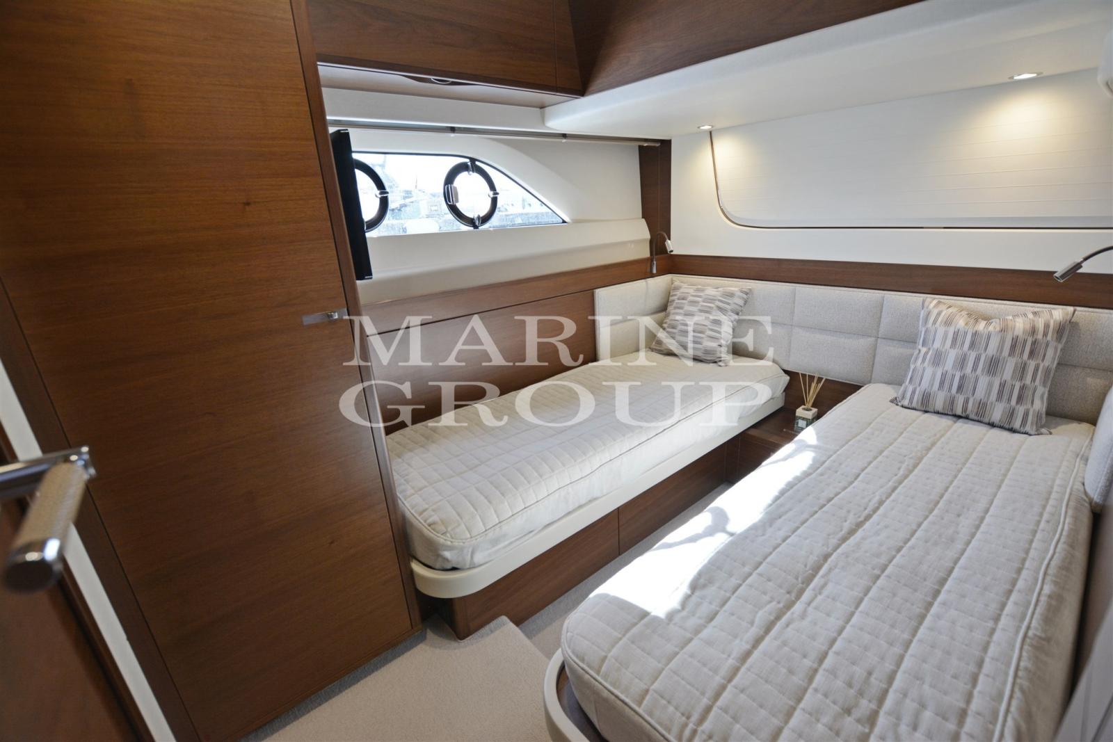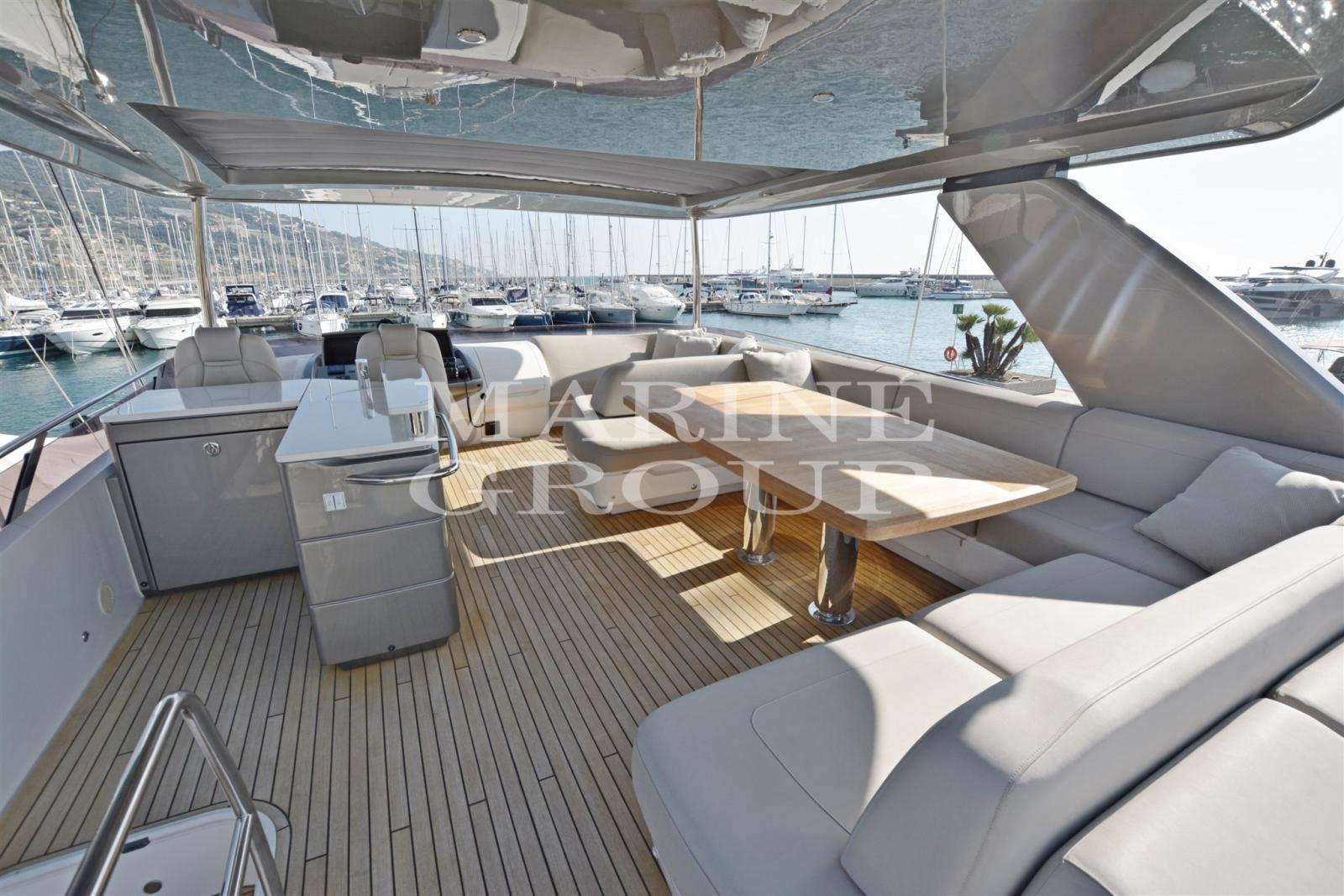 Stabilisateur gyroscopique (Seakeeper 16) - Intérieurs en noyer satiné - Dessalinisateur - Propulseurs de poupe et d’étrave à vitesse variable - Climatisation chaud/froid 106 000 BTU également dans les salles de bains - Climatisation cabine équipage 6 000 BTU - Passerelle télescopique électro-hydraulique (3,5 m) avec mains courantes automatiques - TV SAT - Starlink - Table de flybridge en teck - Table de cockpit fixe en teck - Moustiquaires dans tous les hublots ouvrants - Pompe 24v pour le transfert de carburant d’un réservoir à l’autre - Mise à niveau Cuir PUTTY dans le canapé de la dinette et dans le canapé à côté de la console - Housses extérieures sur le fly et le cockpit en Sunbrella gris - USB dans le salon, la cuisine, les cabines avant et les invités jumeaux, N.2 dans la cabine du propriétaire et dans les postes de pilotage - Table interne (côté console) - Haut-parleurs du cockpit - Haut-parleurs à l’avant - Salon avec TV rétractable - TV dans la cabine propriétaire - Cabine d’invités avant avec TV LED 28" avec radio/DVD/MP3 Fusion et Bluetooth - Cabine d’invités tribord et tribord avec TV LED 22" avec Radio/DVD/MP3 Fusion et Bluetooth - TV dans la cabine de l’équipage - Mise à niveau du générateur Onan 19kW/50Hz au lieu de standard - Générateur ONAN supplémentaire 11kw/50Hz - Plan de cuisine en Solid Surface blanc porcelaine - Prises continentales 220v/240v - Lumières d’amarrage arrière (montées sur le Fly) - Machine à laver et sèche-linge séparés - N.1 Caméra dans la salle des machines - Cabine d’invités tribord et tribord avec lits simples transformables en lit double - Coffre-fort dans la cabine principale - Poignées de porte intérieures Turnstyle Sand Shagreen en chrome brillant au lieu de celles standard - Système audio comprenant : système Blu-ray Harman Kardon 5.1 (avec Bluetooth) et haut-parleurs KEF dans le salon - Mise à niveau de la plaque à induction dans la cuisine - Troisième poste de contrôle dans le cockpit - 20 m supplémentaires de chaîne d’ancre de 10 mm pour un total de 80 m - Planchers en noyer V Groove dans la cuisine et la console - Équipement de la cabine de l’équipage (avec 2 Lits simples) - Matériau White Line Brava sur les panneaux de façade de la cuisine au lieu de standard - Combinaison bidet-toilettes (y compris cabine équipage) - Armoires de cuisine en noyer satiné au lieu de standard - Toit rigide à la volée avec capote électrique (y compris lumières réglables) - Passages latéraux et zone de proue en teck - Pack ALLURE avec HardTop avec détails de surpiqûres contrastées dans les sièges de la console intérieure et du flybridge, Mise à niveau pour l’éclairage extérieur, Console et meuble bar du fly et des prises d’air HT et moteur peintes en Oyster Grey, Coussins extérieurs en mousse réticulée, Dossiers d’étrave réglables, Feux de tableau arrière sous-marins, Feux latéraux arrière sous-marins