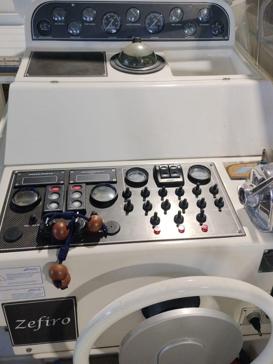 Indicateur d'angle de barre, Commande électrique, Ordinateur fixe de bord, DSC VHF, Plotter GPS, Panneau de commande, Siège copilote.