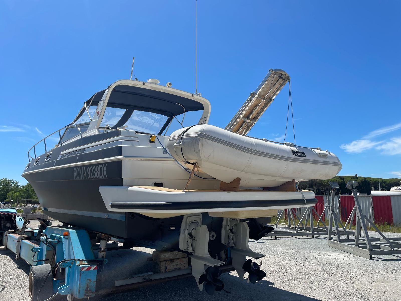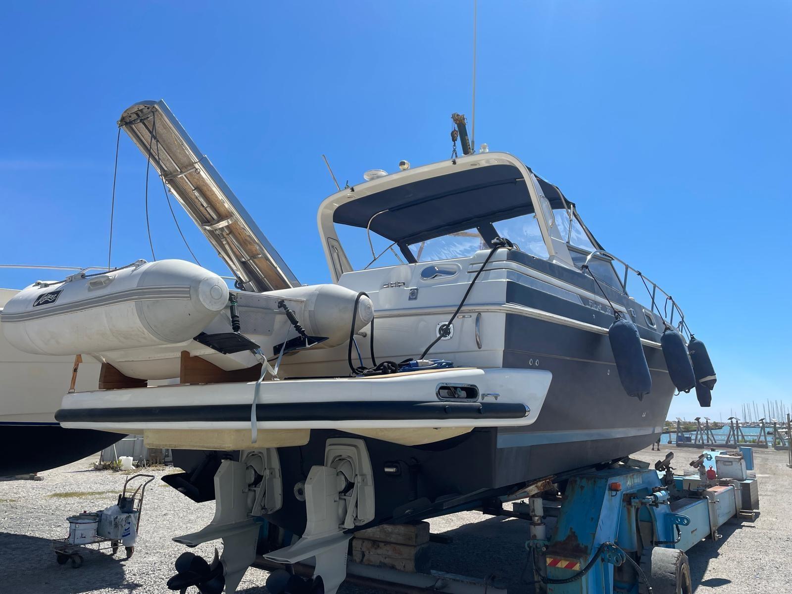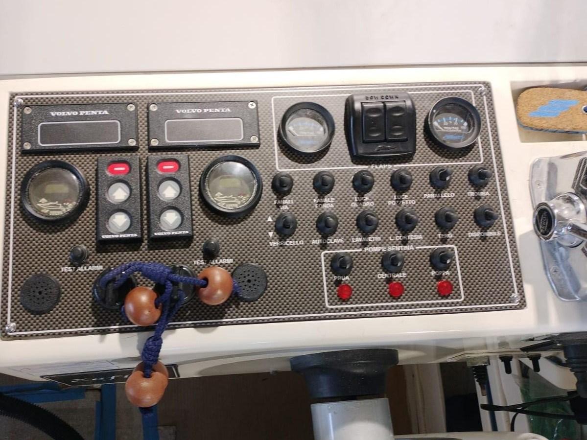 Alarme gaz, Alarme moteur, Alarme de pompe de cale, Alternateur, Ouverture du compartiment moteur électrique, Eau sous pression, 3 Batteries, Passavant en teck (FLEXITECHT), Couleur spéciale, Douche de cockpit, Flaps électriques, Extincteur(s) fixe(s), Indicateurs de flaps, Lavabo dans le cockpit, Éclairage de courtoisie, Spots sous-marins, Moteur hors-bord pour annexe, Défenses, Passerelle, Plateforme arrière, 3 Pompe de cale automatique, Pompe de cale manuelle, Pont en teck, Cockpit en teck, Prise de quai, Connexion eau sous pression à quai, Rollbar, Guindeau électrique, Echelle de bain, Selles pour Annexe, table de cockpit (ELETTRICO), Annexe (ARIMAR CHIGLIA RIGIDA 2,5), Corne, Pont en teck, Winch, Winch hydraulique.