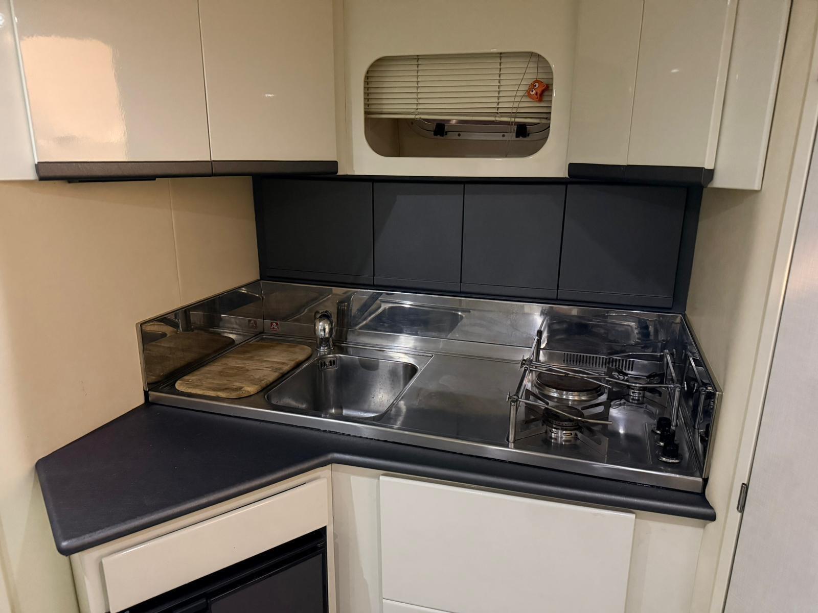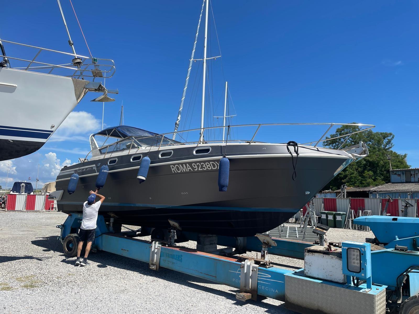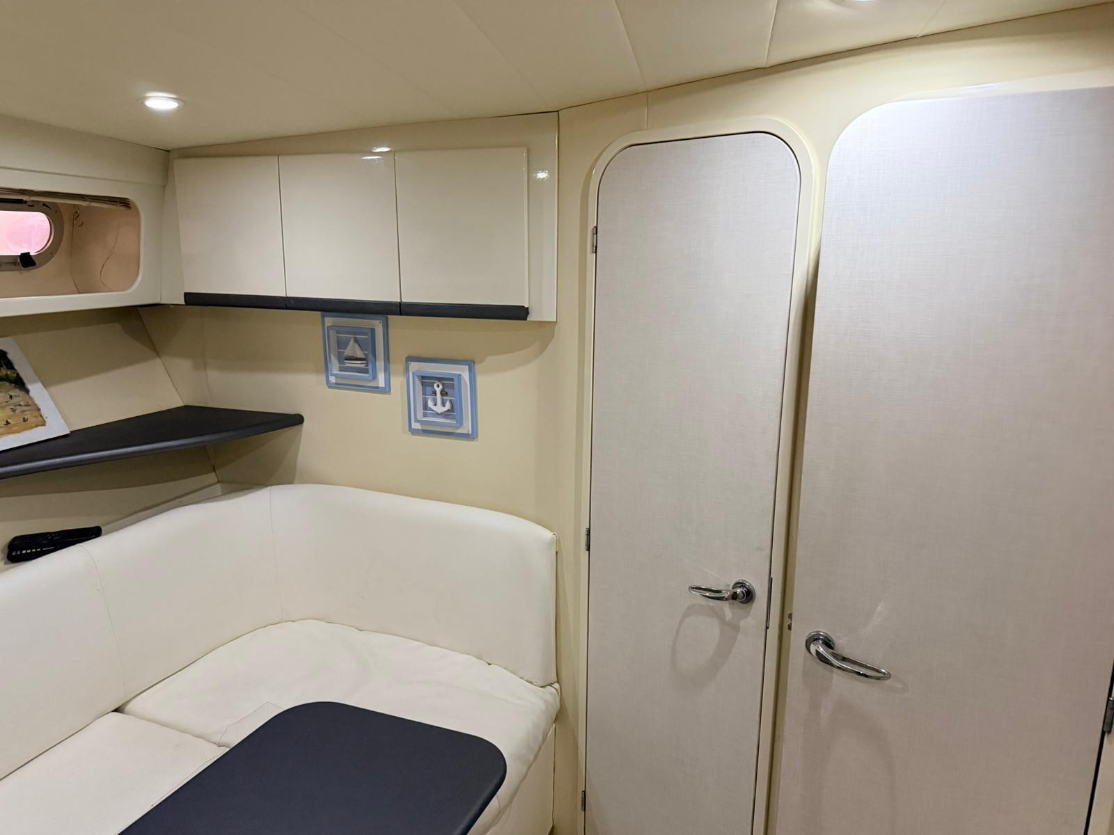 Alarme gaz, Alarme moteur, Alarme de pompe de cale, Alternateur, Ouverture du compartiment moteur électrique, Eau sous pression, 3 Batteries, Passavant en teck (FLEXITECHT), Couleur spéciale, Douche de cockpit, Flaps électriques, Extincteur(s) fixe(s), Indicateurs de flaps, Lavabo dans le cockpit, Éclairage de courtoisie, Spots sous-marins, Moteur hors-bord pour annexe, Défenses, Passerelle, Plateforme arrière, 3 Pompe de cale automatique, Pompe de cale manuelle, Pont en teck, Cockpit en teck, Prise de quai, Connexion eau sous pression à quai, Rollbar, Guindeau électrique, Echelle de bain, Selles pour Annexe, table de cockpit (ELETTRICO), Annexe (ARIMAR CHIGLIA RIGIDA 2,5), Corne, Pont en teck, Winch, Winch hydraulique.