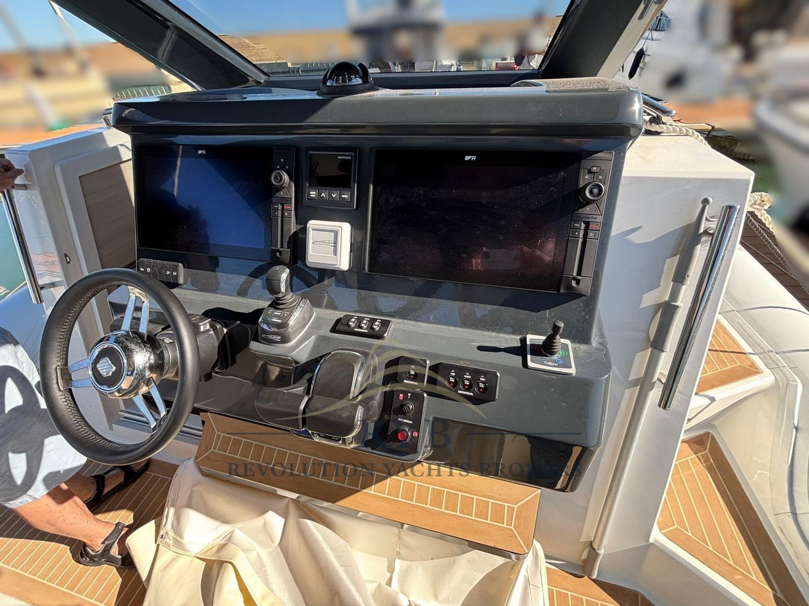Ancre (INOX), Passavant en teck, 2 Douche de cockpit, Lavabo dans le cockpit, Éclairage de courtoisie, Plateforme arrière, Cockpit en teck, Prise de quai, Guindeau électrique, 2 Echelle de bain, table de cockpit, T-Top.
