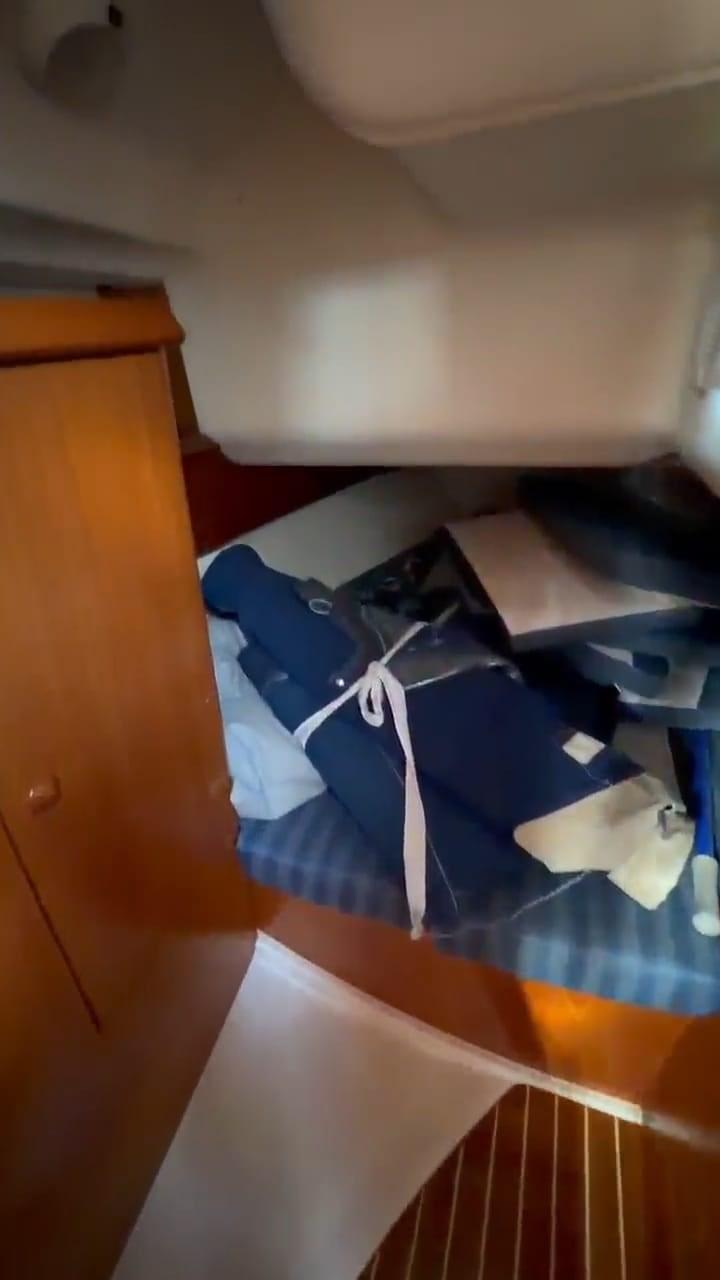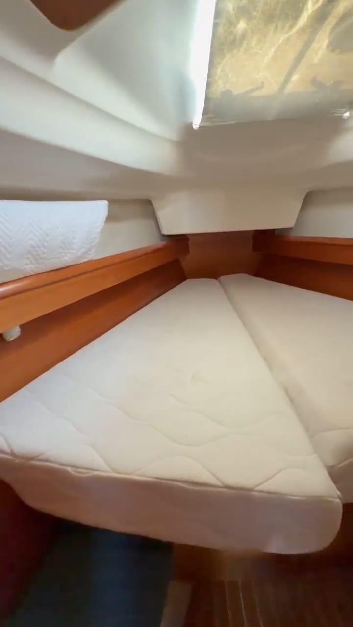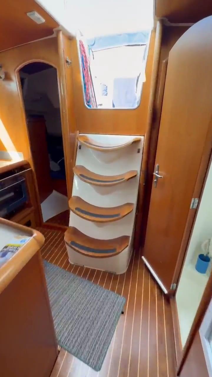 Alarme moteur, Eau sous pression, Douche de cockpit, Panneau solaire, 6 Défenses, Passerelle, Plateforme arrière, Pompe de cale manuelle, Guindeau électrique, Echelle de bain.