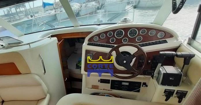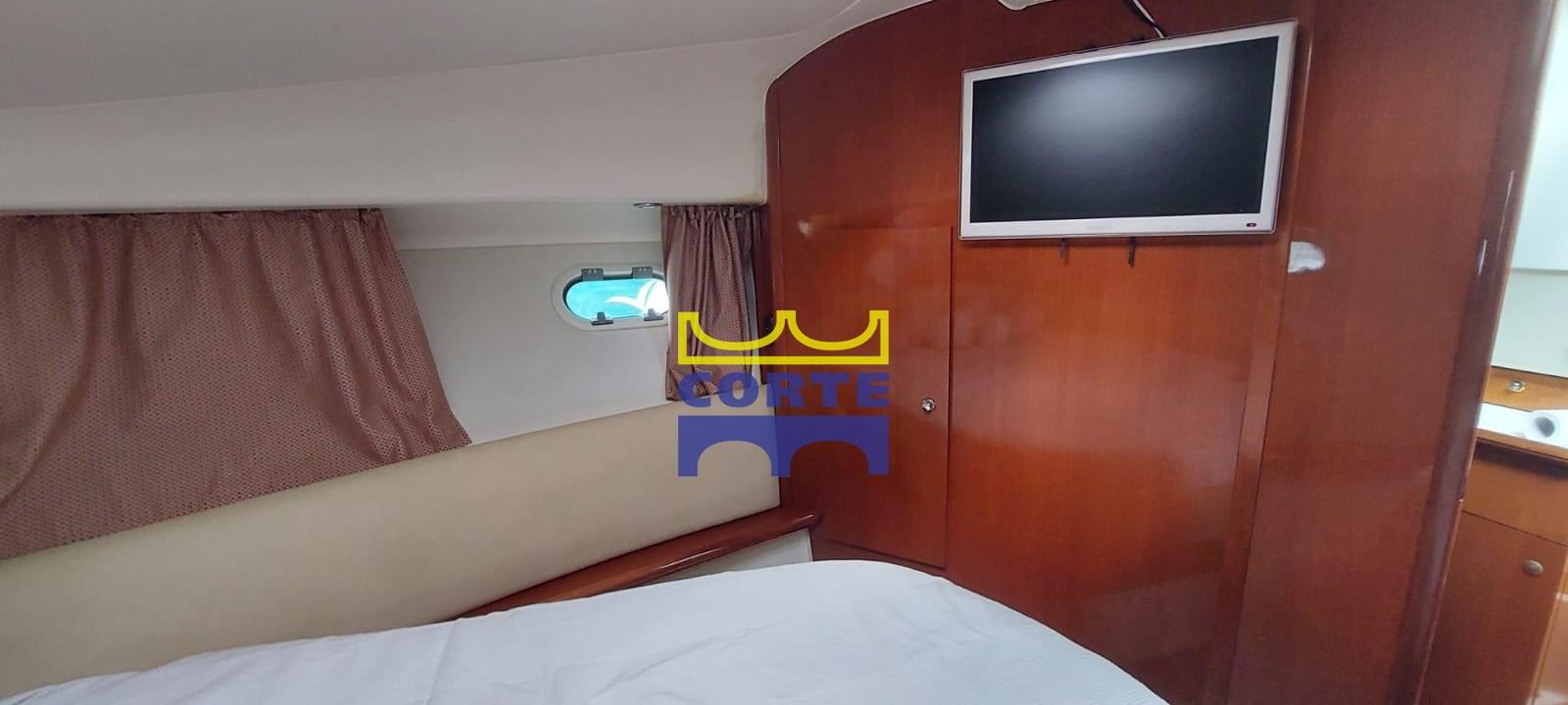 Alarme moteur, Eau sous pression, 5 Batteries, Chargeur de batterie (25 A), Douche de cockpit, Double barre à roue, Flaps électriques, Bossoirs pour annexe (passerella), Éclairage de courtoisie, Passerelle (idraulica), Plateforme arrière (strutturale poppa in teak), Pompe de cale automatique, Pompe de cale manuelle, Porte latérale, Cockpit en teck, Prise de quai, Guindeau électrique, Echelle de bain, Winch électrique avant.