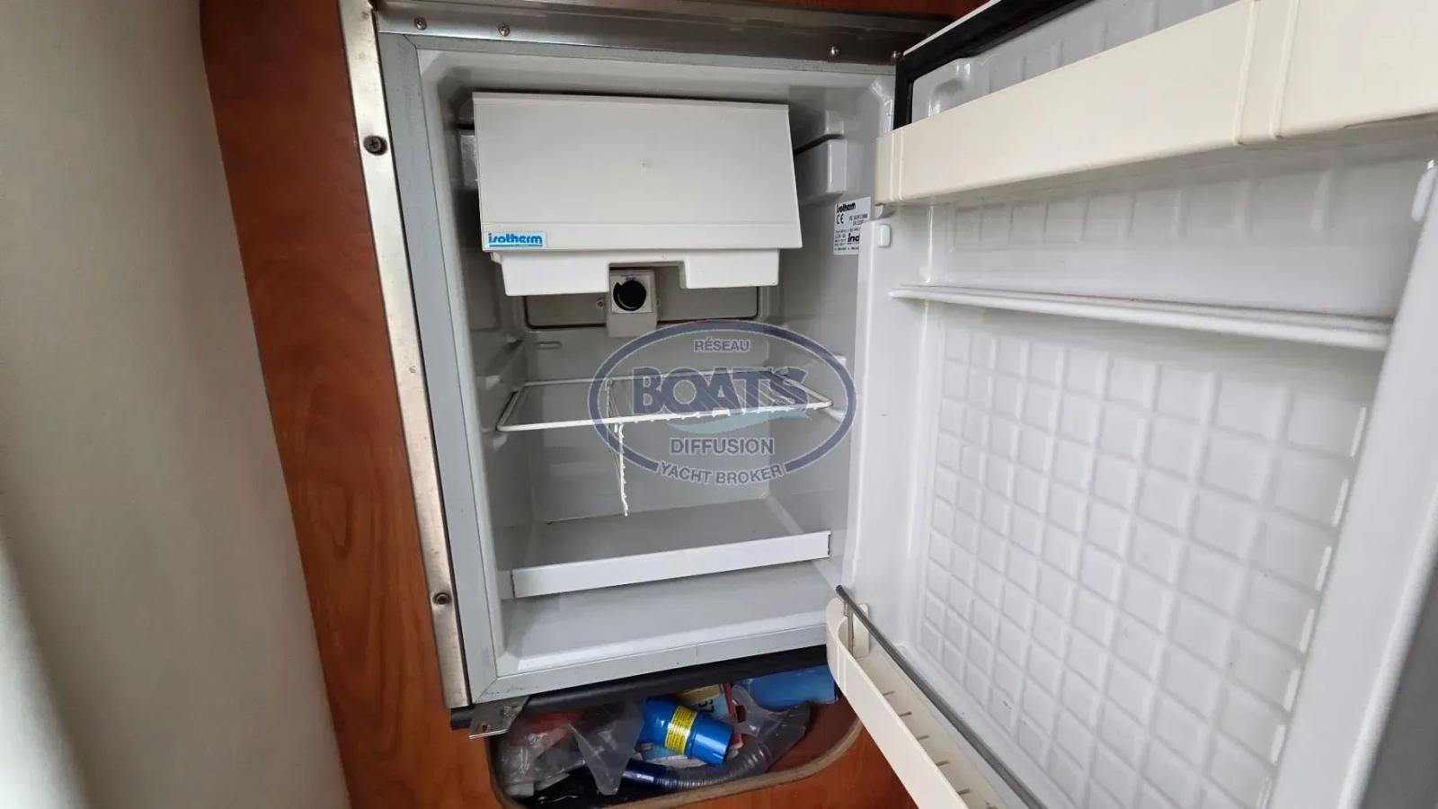 A l'intérieur belle Cabine grand lit double, superbe état, avec toilette chimique.