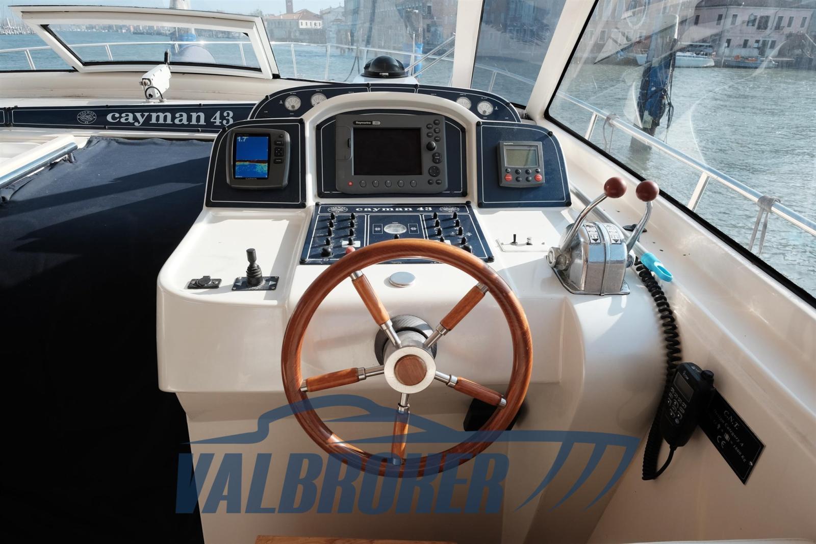 Cayman 43 WA Hard Top, propulsé par 2X 425 Hp Caterpillar 3126. transmission par ligne d’arbre. 2 cabines, 2 salles de bain.