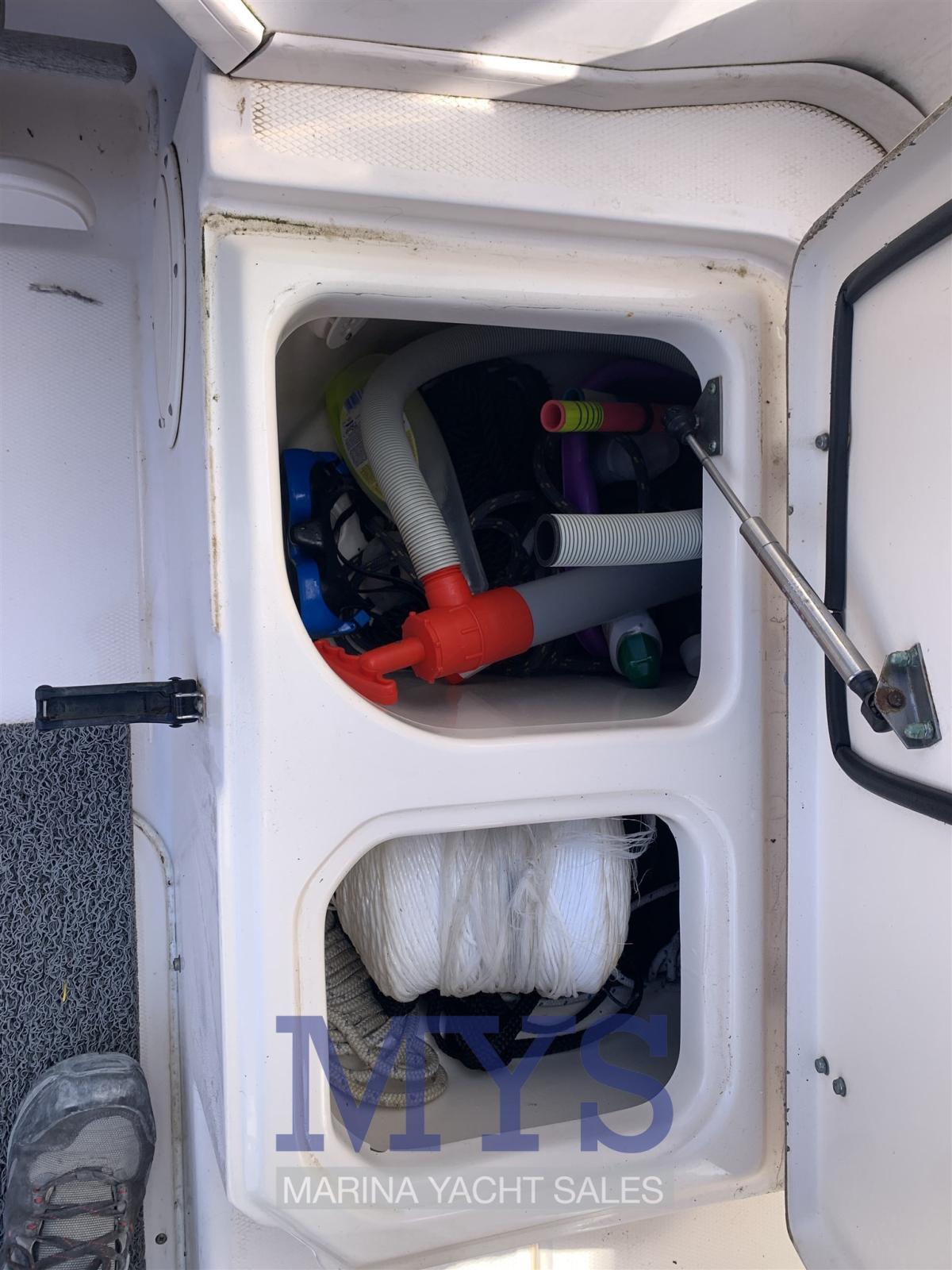 Alarme moteur, Eau sous pression, Douche de cockpit, Phares fixes arrière, Flaps hydrauliques, Indicateurs de flaps, Pompe de cale automatique, Guindeau électrique, Echelle de bain, Corne, T-Top.