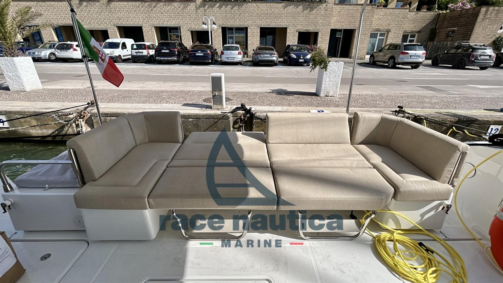 2 feux sous-marins bleus de 21W, chargeur/onduleur 2000W 220V, prise 12V à la station de pilotage, douche à eau chaude/froide, lumières de courtoisie intérieures et extérieures, 2 coussins extérieurs dans la berline avant, pack audio Fusion Bluetooth 2HP, batterie auxiliaire AGM supplémentaire de 115A, prises de 220V avec prises d’habitacle, 1 WC électrique (cabine du propriétaire), rideaux coulissants dans la berline, Coussins externes de cockpit, 2 ailes de garde, contrôle supplémentaire du treuil avant avec compteur chaîne, 2 moteurs Yanmar 4LV 250HP, coussins externes Thunder, coussins internes en PVC blanc pur (version Maestro), Bimini dans le cockpit, couvercle de cockpit, table de cockpit, rampes sur la passerelle, robinet d’eau douce dans le cockpit et le casier d’ancre, grille électrique Kenyon 220V dans le cockpit, table électrique carrée basse convertible en table à manger, Garmin Pack 1, réfrigérateur 12V 130L, toilettes électriques d’eau douce pour les invités, isolateur galvanique, panneaux solaires 3x90/100W sur le toit sport, antifouling, amorce époxy, plateforme arrière fixe en teck synthétique, ancre de 16KG, 60m de chaîne.