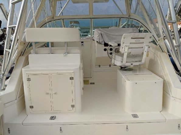 Tour de thon avec deuxième guide, bassin pour appâts vivants et prises, coussins complets, auvents transparents à fermeture et à guindeau,
