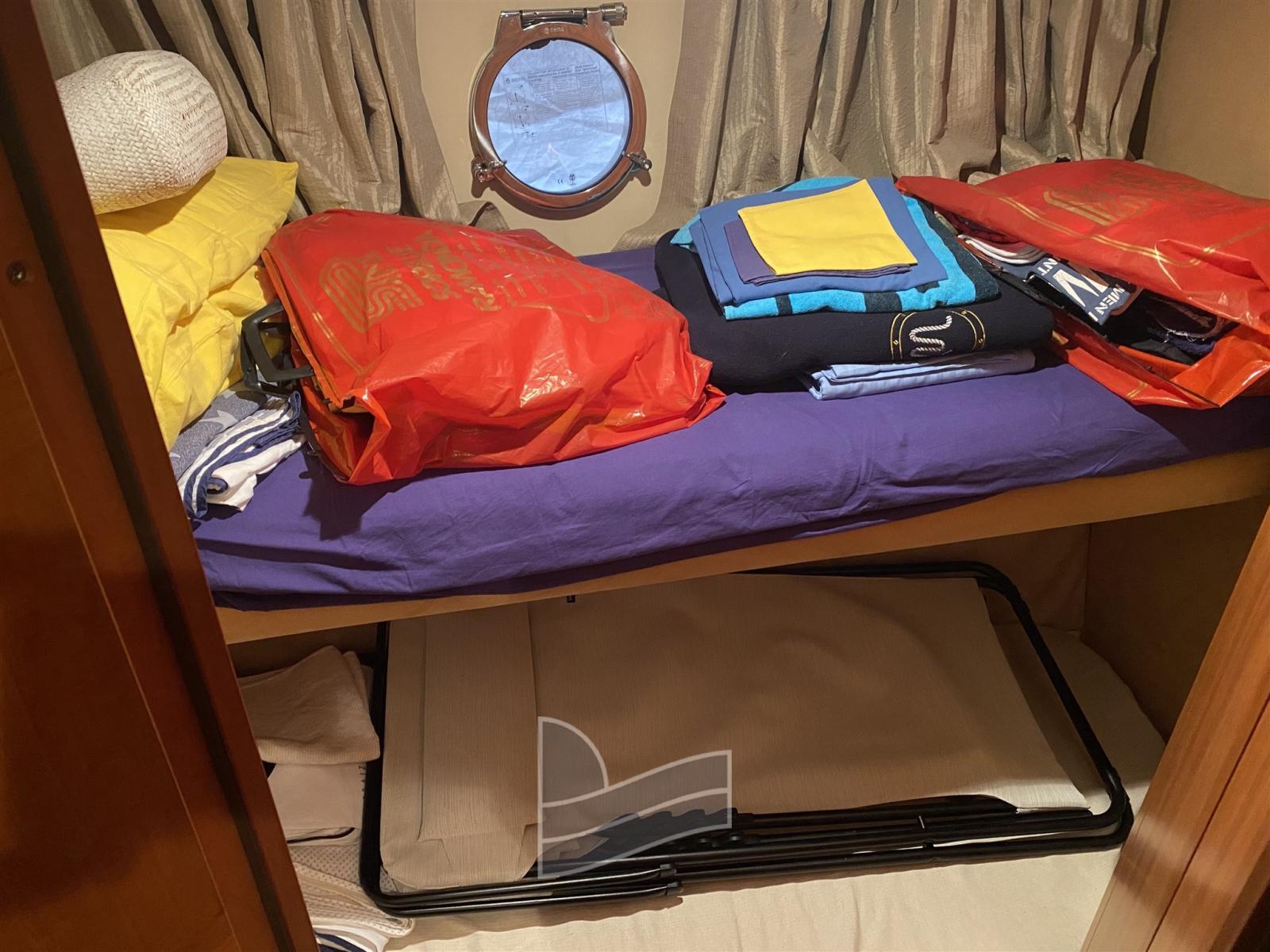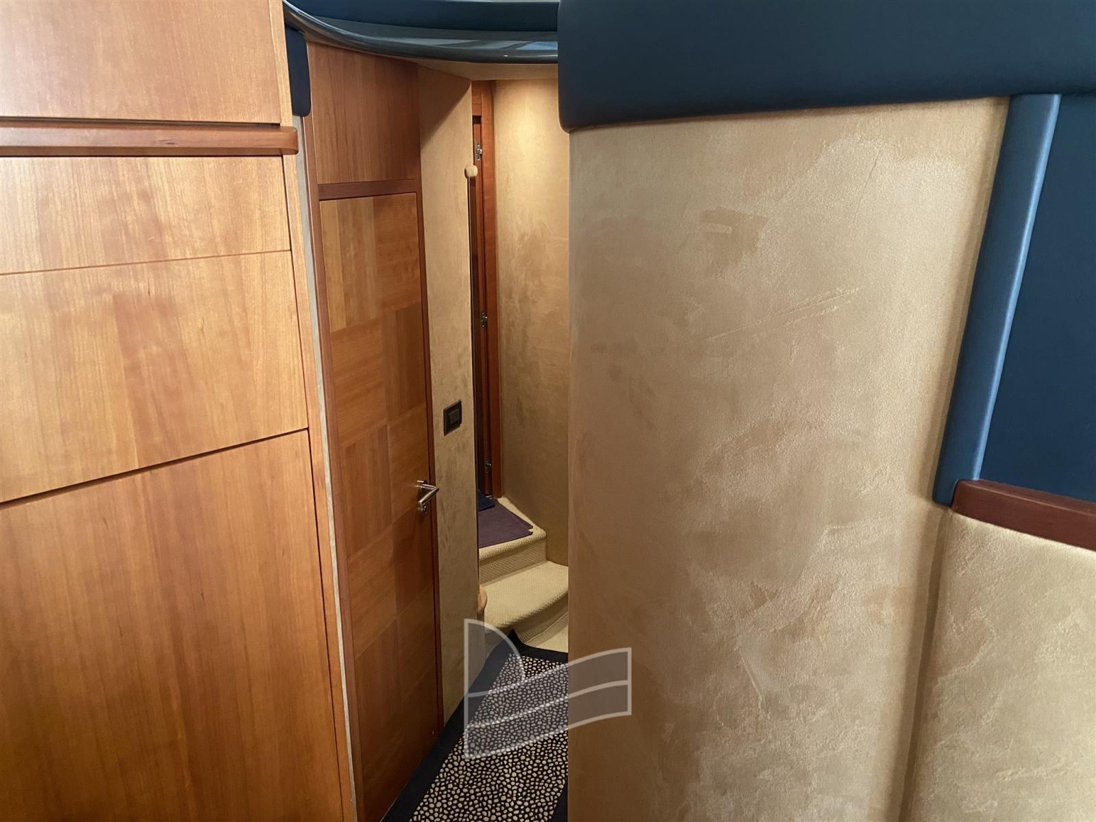 Alarme moteur, Eau sous pression, Câble d’alimentation à quai, Douche de cockpit, Double barre à roue, 2 Flaps hydrauliques, Extincteur(s) fixe(s), Passerelle (Idraulica), Plateforme arrière (di poppa in teak), Pompe de cale automatique, Porte latérale, Cockpit en teck, Prise de quai, Rollbar, Guindeau électrique, Echelle de bain, Corne.