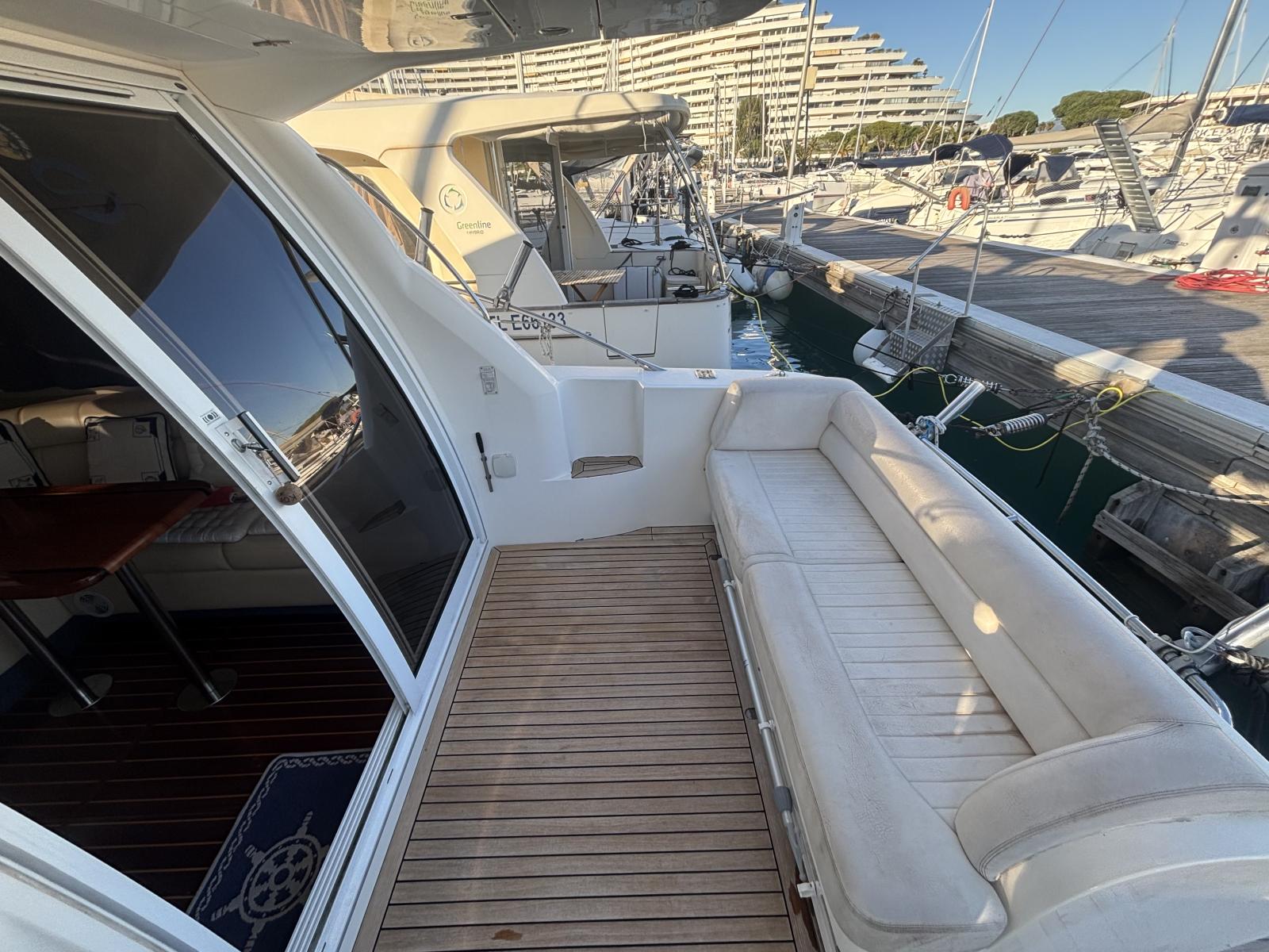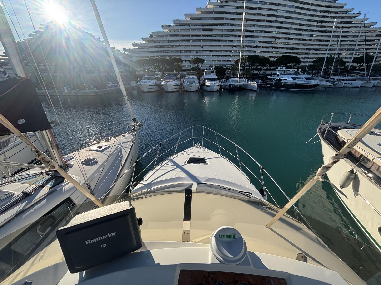 Le bateau est propulsé par une motorisation bi-moteur diesel, reconnue pour sa robustesse et son agrément en navigation. Cette configuration assure une excellente manœuvrabilité au port ainsi qu’une navigation stable et sécurisante, aussi bien à vitesse de croisière qu’en manœuvres lentes.