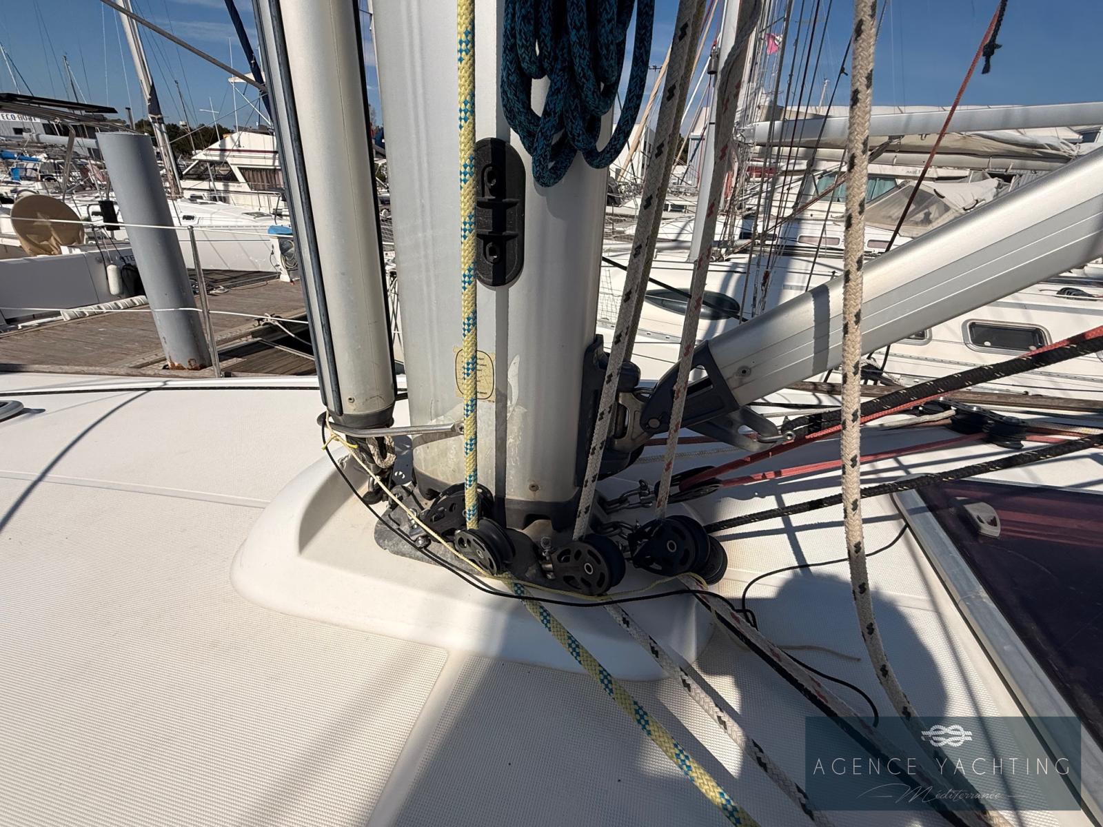 Les voiles actuelles (génois et grand-voile) sont en fin de potentiel, ce qui est pleinement intégré dans le positionnement tarifaire. Une solution avec voiles neuves sur mesure peut être proposée selon votre programme de navigation, permettant une personnalisation complète.