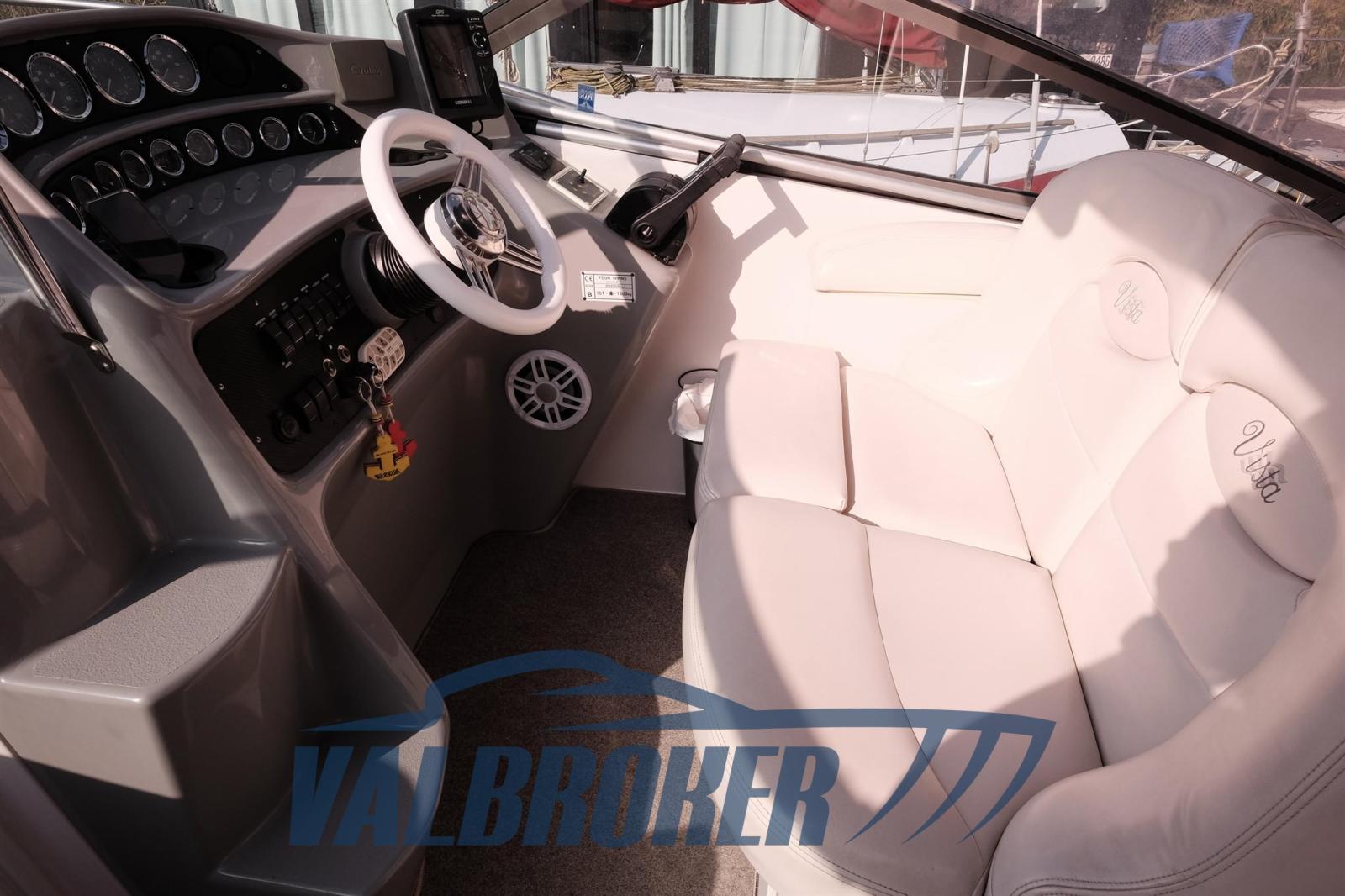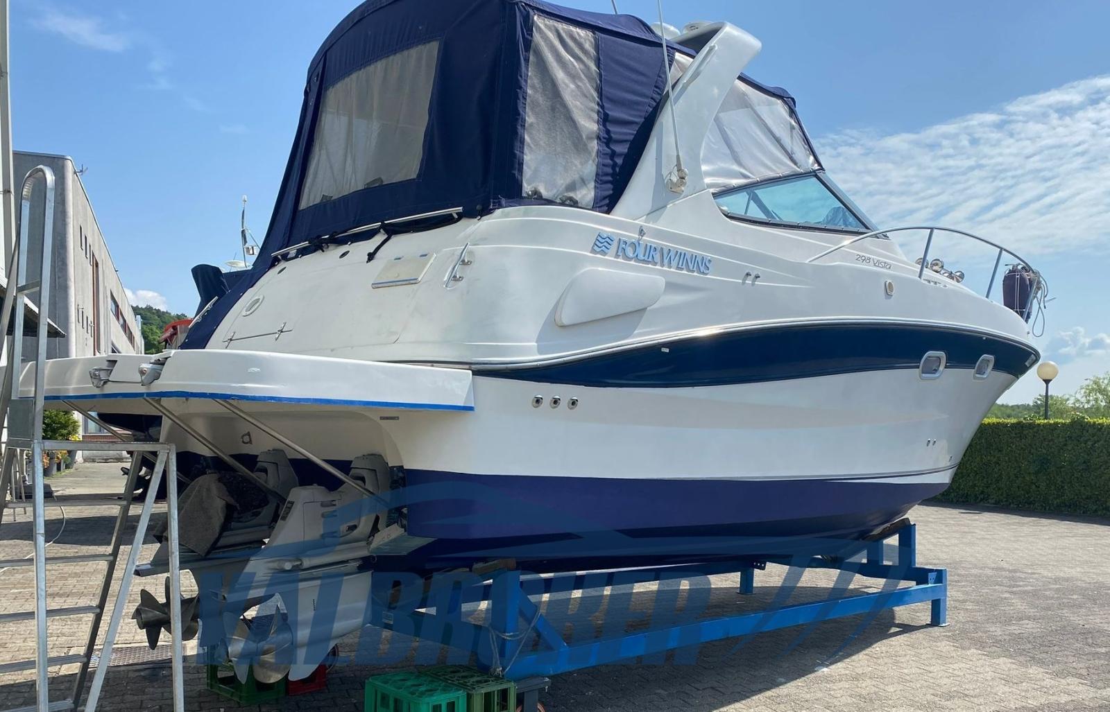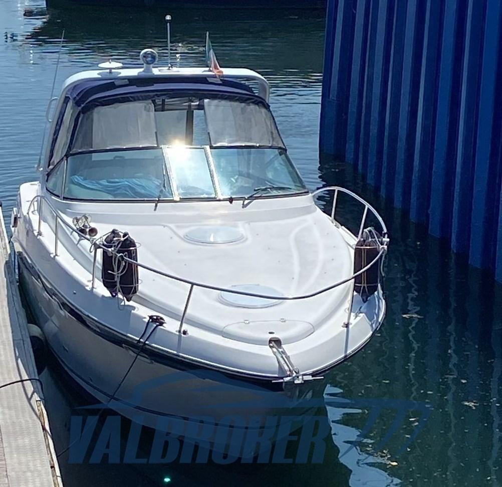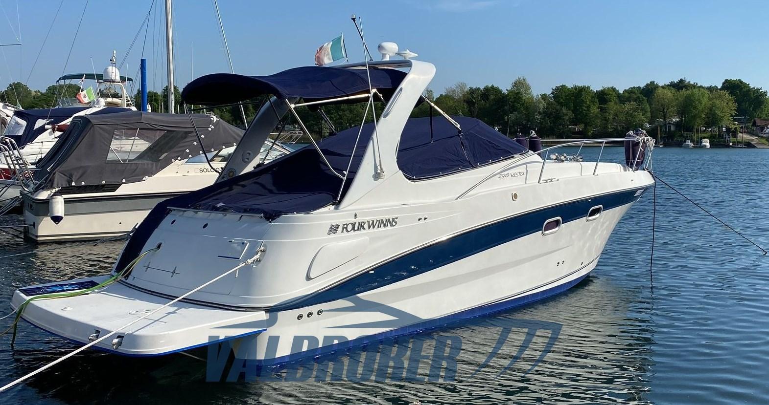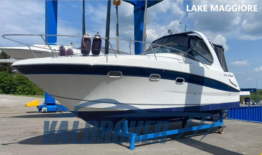 Chantier américain, Four Winns 298 Vista, visible sur le lac Majeur. Propulsé par 2X 270 Hp Volvo Penta 5.0 Gi V8 essence. Le bateau peut accueillir confortablement 4 personnes, avec double proue en V, cabine double à l’arrière, cuisine, salle de bain avec porte. Parfait pour les excursions d’une journée ou le camping nautique et les courtes croisières. Grand canapé dans le cockpit avec table qui peut être transformé en un bain de soleil confortable.