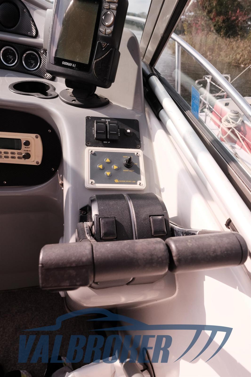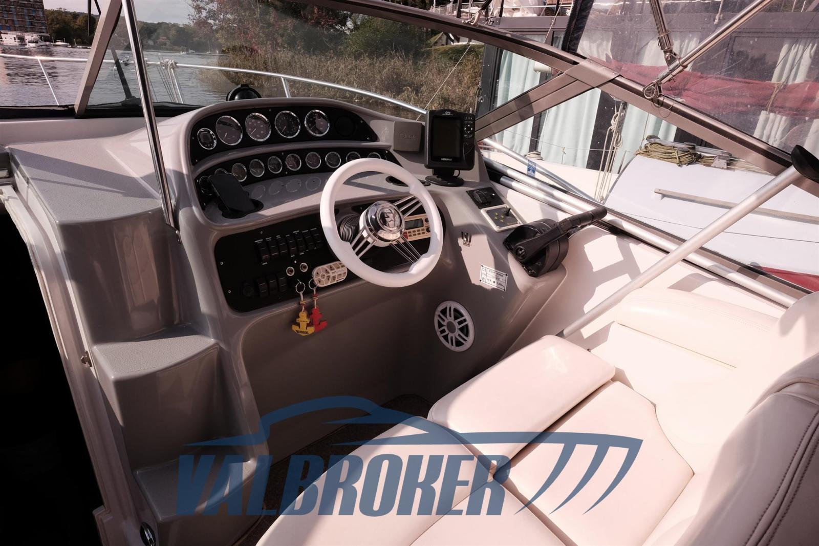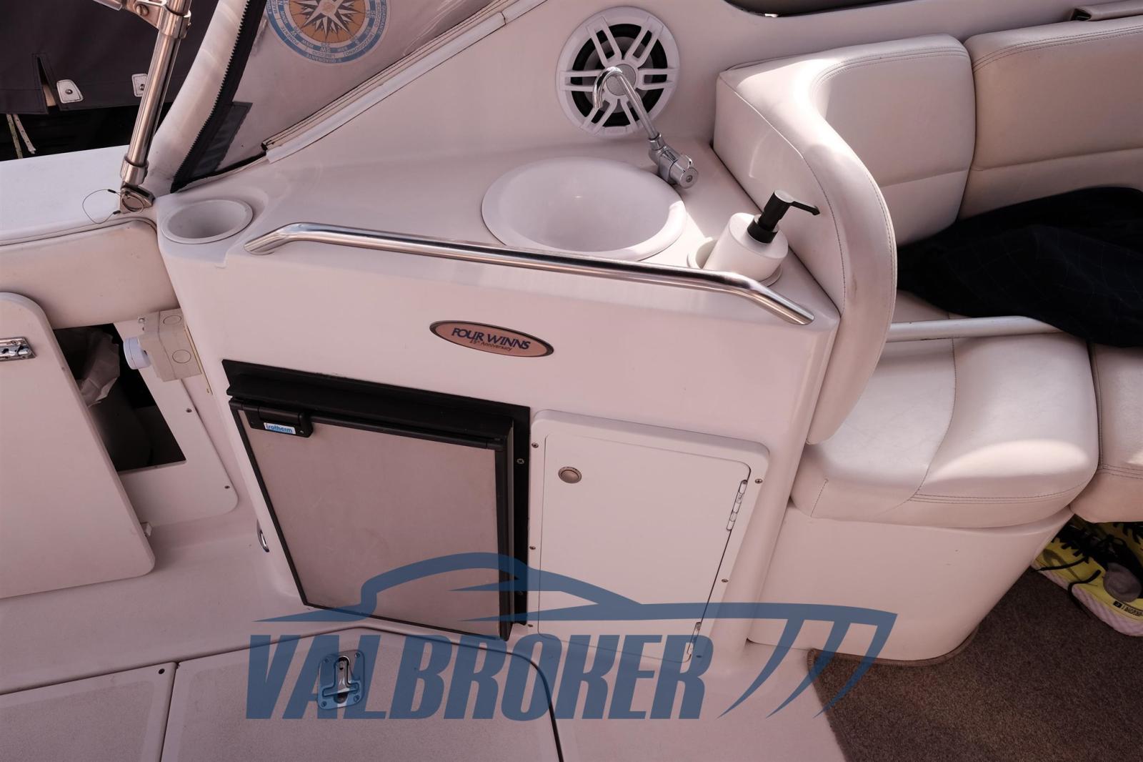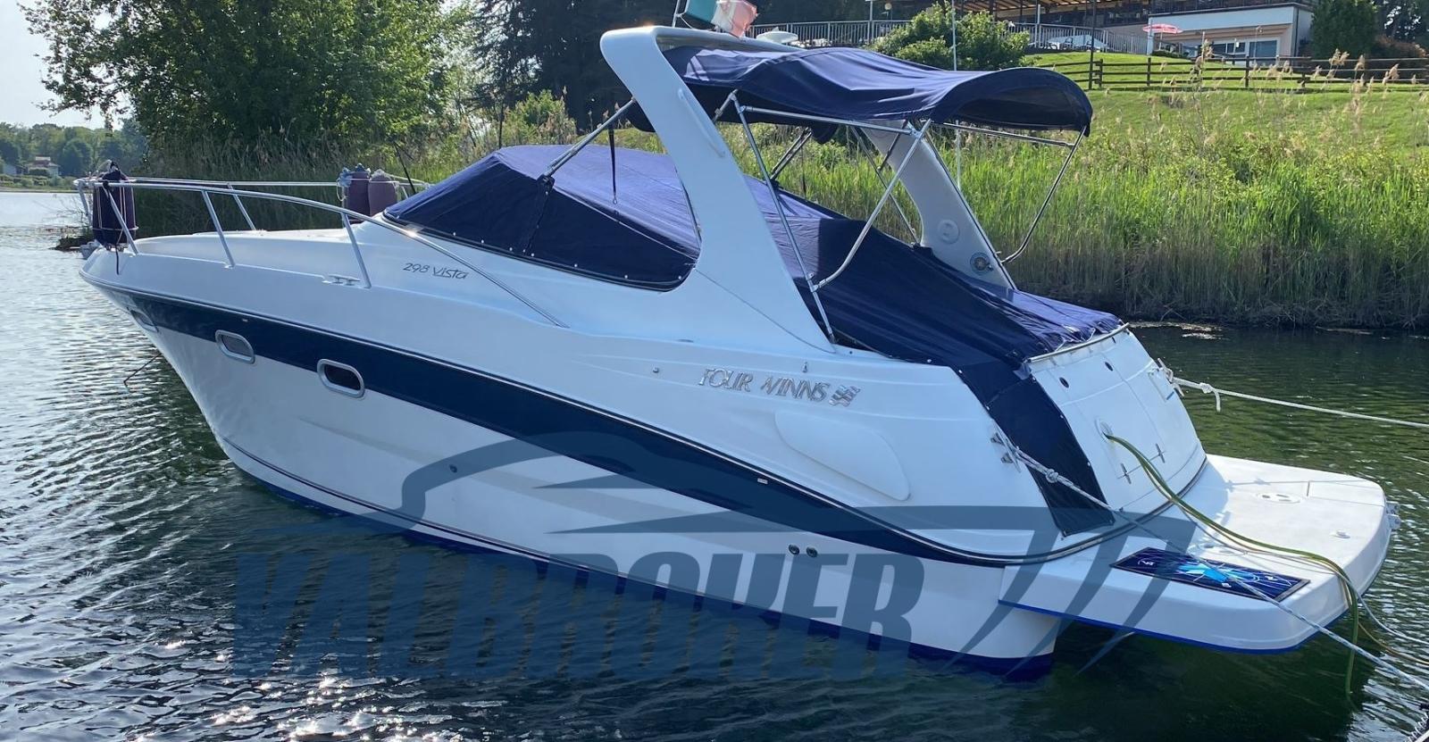 Chantier américain, Four Winns 298 Vista, visible sur le lac Majeur. Propulsé par 2X 270 Hp Volvo Penta 5.0 Gi V8 essence. Le bateau peut accueillir confortablement 4 personnes, avec double proue en V, cabine double à l’arrière, cuisine, salle de bain avec porte. Parfait pour les excursions d’une journée ou le camping nautique et les courtes croisières. Grand canapé dans le cockpit avec table qui peut être transformé en un bain de soleil confortable.
