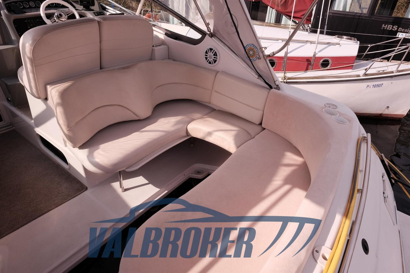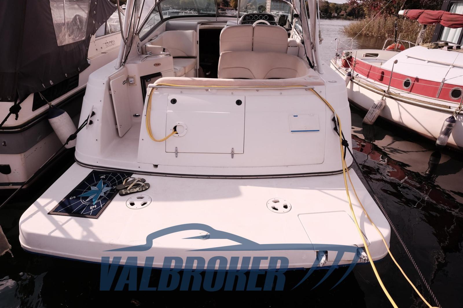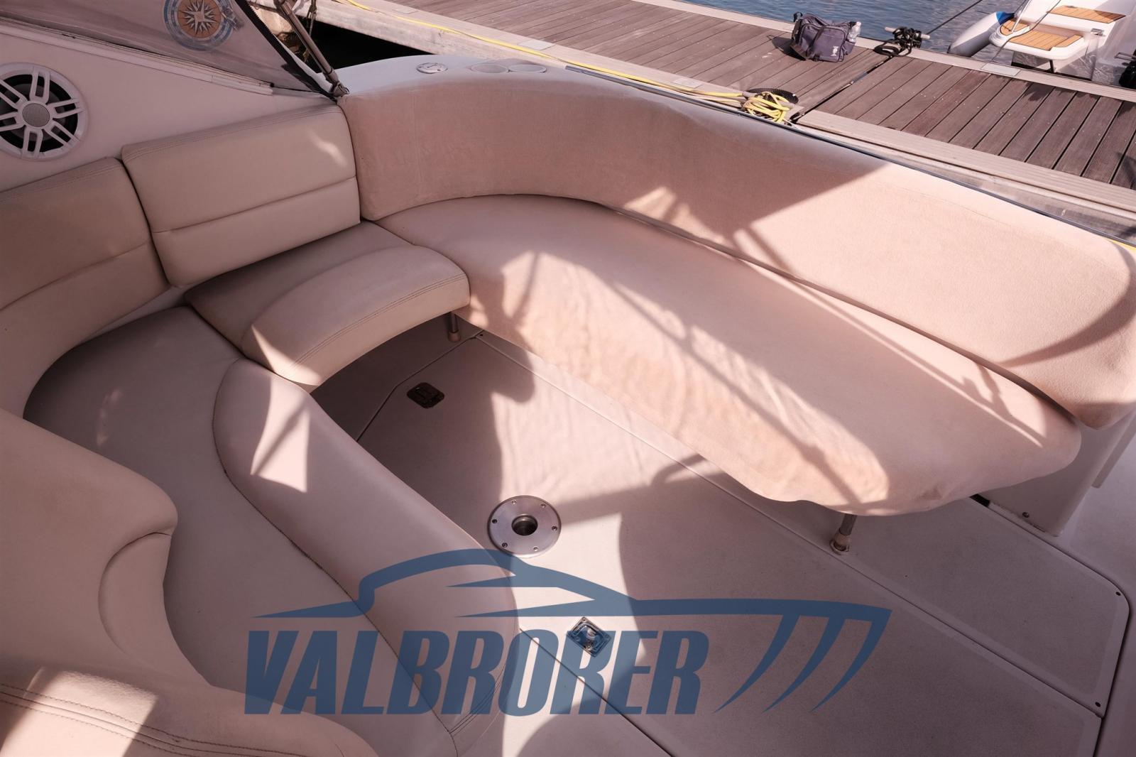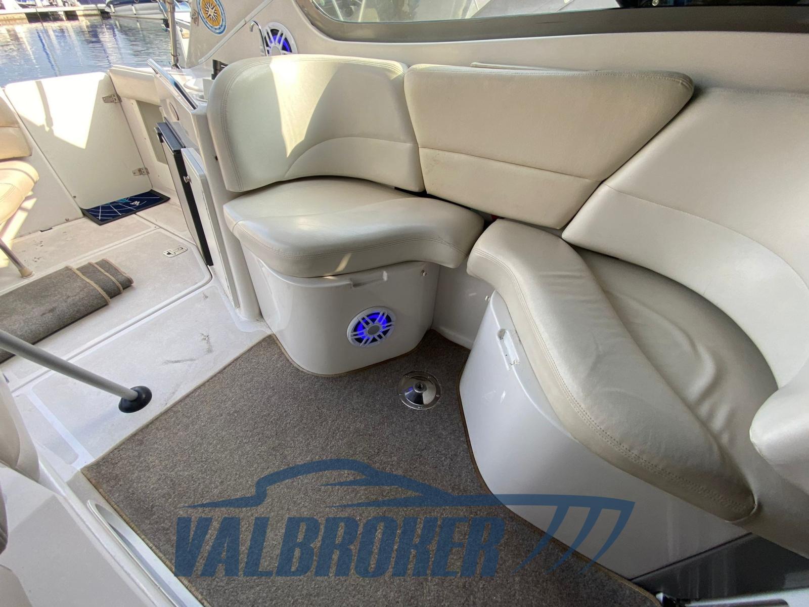 Chantier américain, Four Winns 298 Vista, visible sur le lac Majeur. Propulsé par 2X 270 Hp Volvo Penta 5.0 Gi V8 essence. Le bateau peut accueillir confortablement 4 personnes, avec double proue en V, cabine double à l’arrière, cuisine, salle de bain avec porte. Parfait pour les excursions d’une journée ou le camping nautique et les courtes croisières. Grand canapé dans le cockpit avec table qui peut être transformé en un bain de soleil confortable.