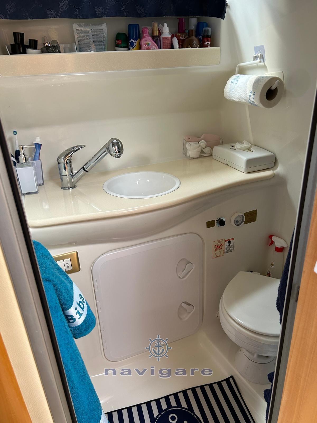 Alarme moteur, Eau sous pression, Douche de cockpit, Phare de poursuite, Éclairage de courtoisie, Pompe de cale automatique, Cockpit en teck, Prise de quai, Guindeau électrique, Echelle de bain, table de cockpit.