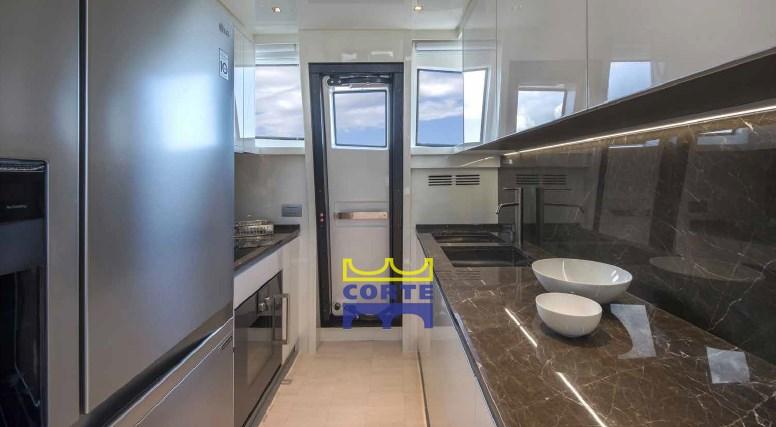 Fixation SAT dans la zone de l’équipage, couverture norvégienne pour Hard Top, auvent avec poteaux pour la proue, deuxième écran sur le flybridge, deuxième cabine de l’équipage, instrumentation du pack or Raymarine, isolation supplémentaire entre la salle des machines et la cabine du propriétaire, pont en teck sur le flybridge, plancher en teck pour la table de proue, nouvelle radiocommande, désaniliseur 250 l/h, propulseur de poupe porté à 20 Kw, fermeture du cockpit arrière avec Norwegian, fermeture du flybridge arrière, puissant compresseur de klaxon avec prise de cockpit dans le hangar à jouets, film teinté pour vitres du volant.