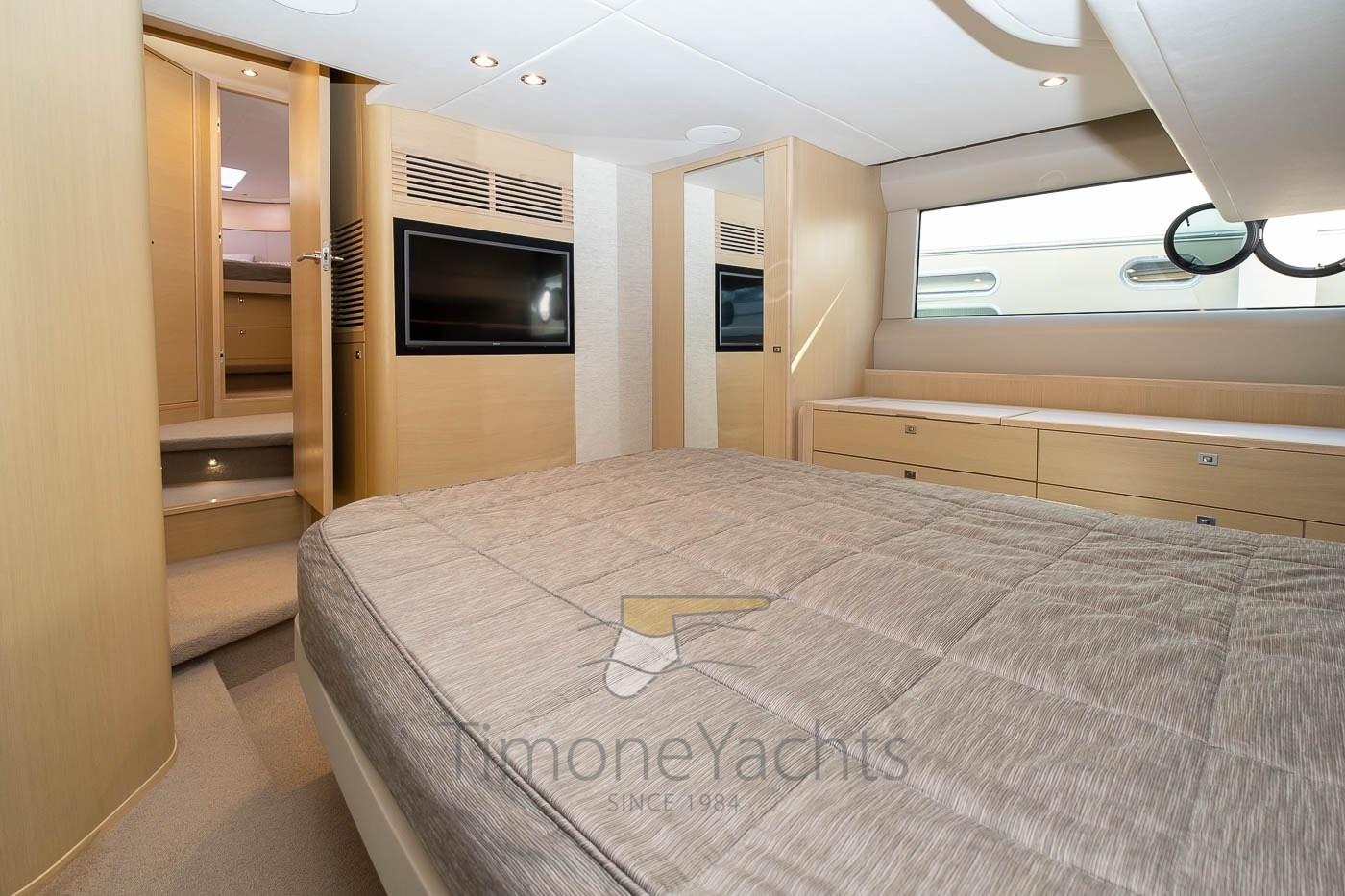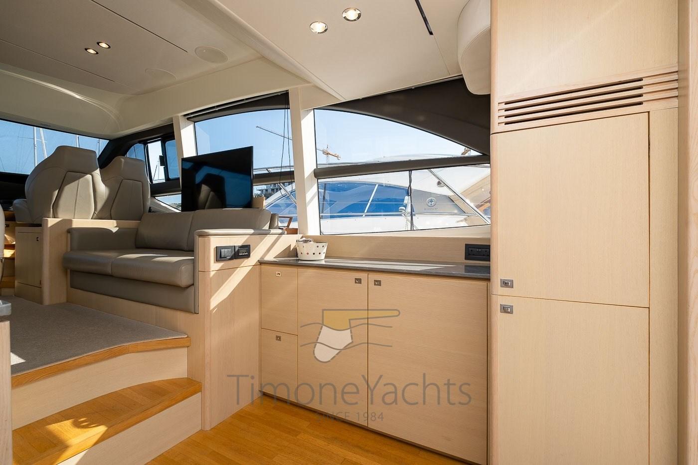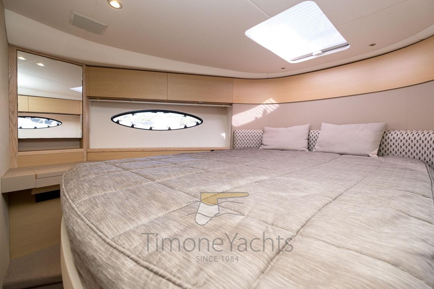 Le bateau crée une ambiance fluide entre le salon et le cockpit, renforcée par les grandes fenêtres latérales qui garantissent une lumière naturelle exceptionnelle dans tout le salon. Avec une vitesse maximale de 32 nœuds et une croisière économique idéale à 2400 tr/min (environ 24 nœuds avec une consommation de carburant optimisée de 120 l/h au total), ce modèle garantit une navigation fluide et une maniabilité précise grâce au joystick, rendant chaque phase d’amarrage simple. La configuration intérieure comprend trois cabines, dont la suite propriétaire pleine poutre, une double cabine VIP à l’avant, une troisième cabine d’accueil avec lits superposés, tandis que le confort à bord est garanti par la préparation ou l’installation du stabilisateur Seakeeper 6, soutenu par le générateur ONAN de 11 kW. Équipé d’une plateforme électro-hydraulique de 400 kg et d’un flybridge spacieux équipé de barre humide, le Princess 49 2017 est un yacht mature et techniquement avancé, idéal pour ceux qui recherchent des performances élevées et un espace supérieur dans une taille toujours facile à gérer.