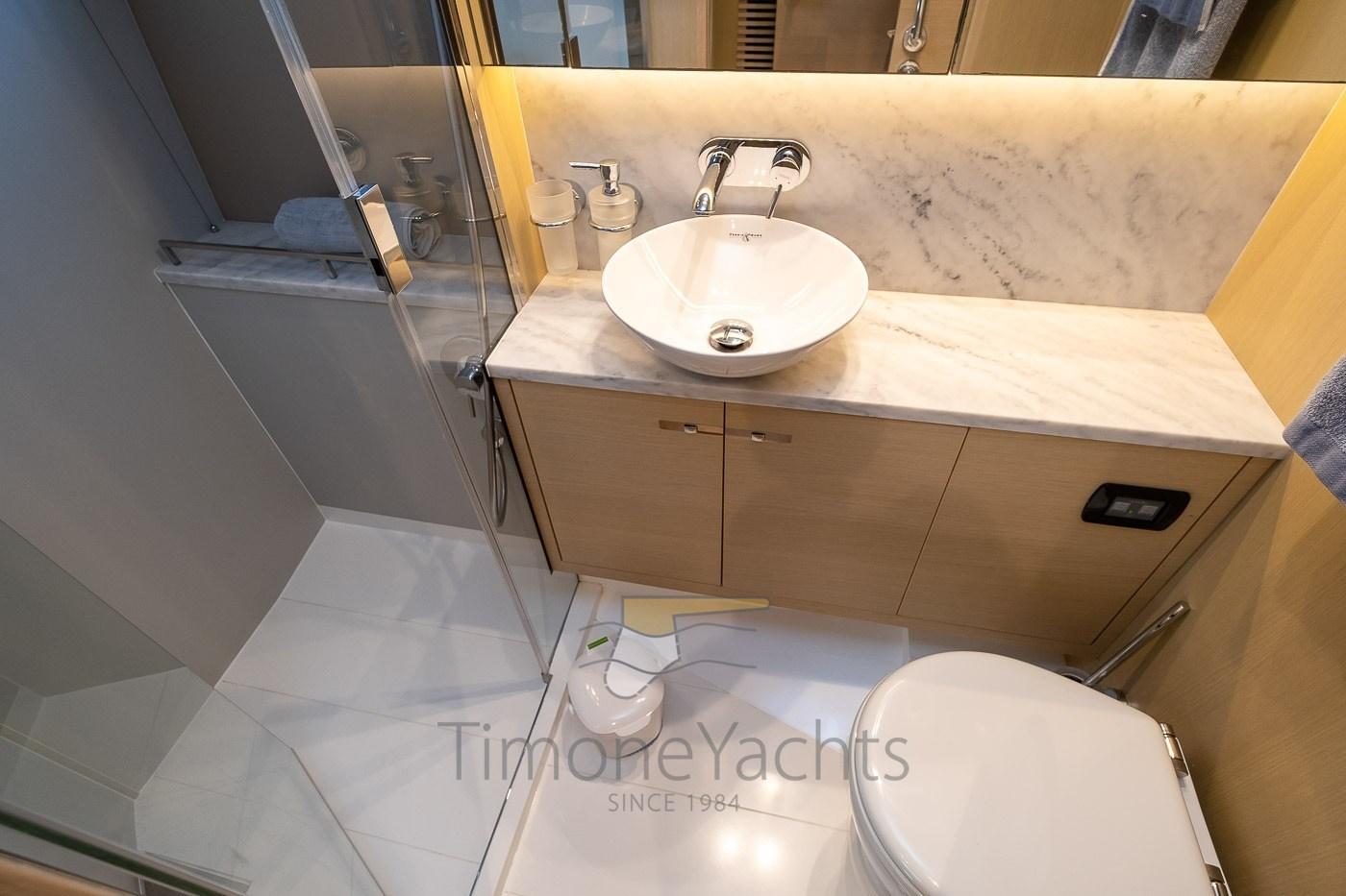 Passavant en teck, Phare de poursuite, Indicateurs de flaps, Éclairage de courtoisie, Spots sous-marins, Passerelle (a scomparsa), Plateforme arrière (plancetta affondabile), Pont en teck, Cockpit en teck, Stabilisateurs (Seakeeper 6), table de cockpit, Table pliante de salon, Winch électrique arrière.
