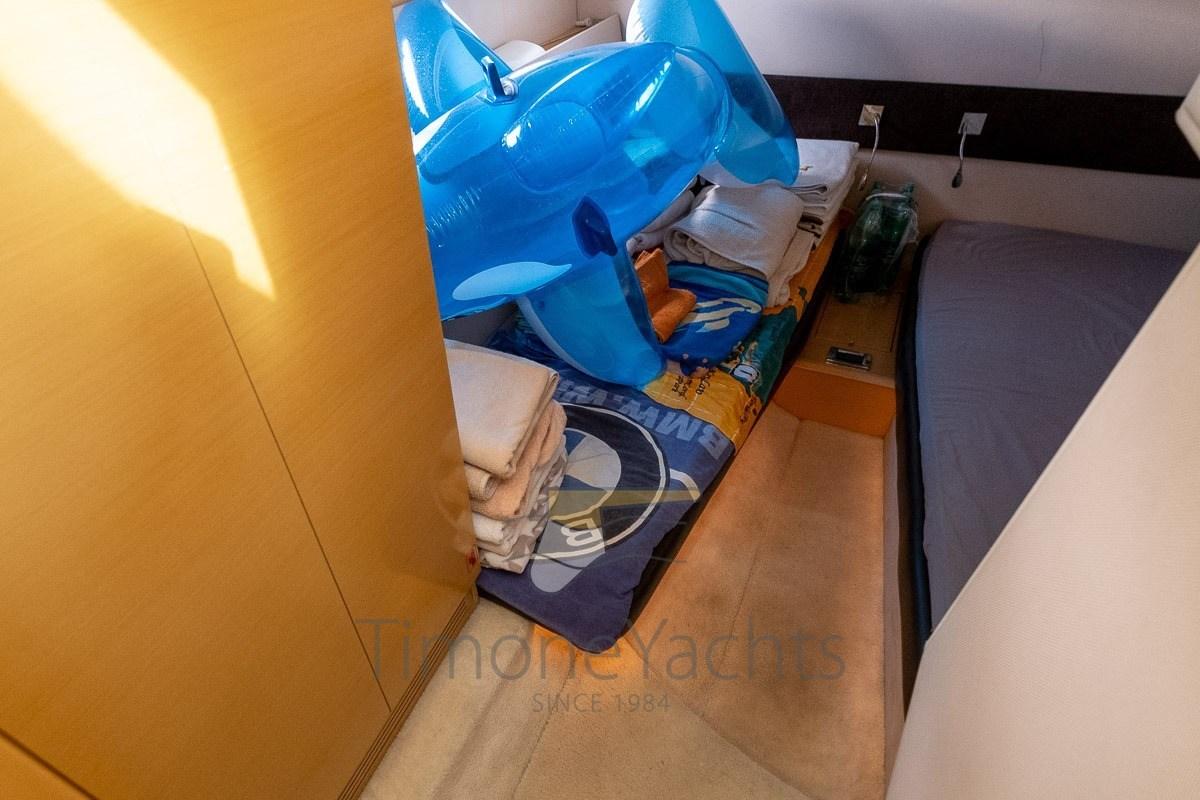 Garage à annexe, Hard top (apribile elettricamente), Indicateurs de flaps, Lavabo dans le cockpit, Éclairage de courtoisie, Spots sous-marins, Passerelle (a scomparsa), Plateforme arrière (plancetta affondabile), Cockpit en teck, table de cockpit, Winch électrique arrière.