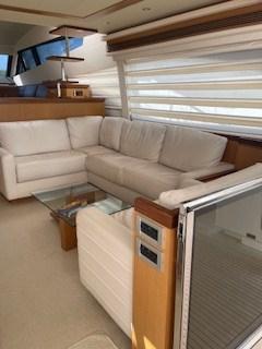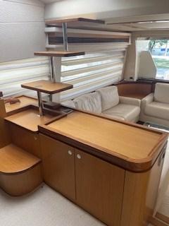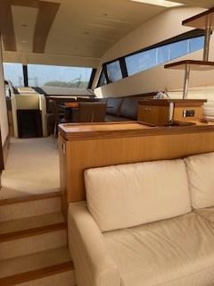 Sellerie complète, Coussins arrieres, Coussin avant, Sellerie de fly, sellerie de cockpit, Taud de console, Taud de siège, 2 Taud de soleil (sul flybridge con 4 pali in acciaio inox e a poppa), Moustiquaires.
