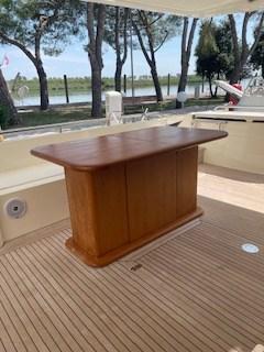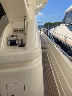 Alarme gaz, Alarme moteur, Alarme de pompe de cale, 2 Ancre (Bruce 50 Kg | Delta con catene maggiorate 2x100 m da 14mm), Eau sous pression, Passavant en teck, canoë, 2 Chargeur de batterie (Mastervolt e Mastervolt Combi), 2 Douche de cockpit (pozzetto), Double barre à roue, 2 Phare de poursuite (manuale sul rollbar | elettrico sul flybridge), Garage à annexe, Grue de flybridge (600 Kg), Extincteur(s) fixe(s), Lavage de chaine, 2 Lavabo dans le cockpit (e sul flybridge), Éclairage de courtoisie, Spots sous-marins (a poppa), Passerelle (Besenzoni), Plateforme arrière, Pompe de cale automatique, Pompe de cale manuelle, Porte latérale, Porte latérale, Cockpit en teck, Prise de quai, Connexion eau sous pression à quai, Guindeau électrique, Echelle de bain (con maniglione in acciaio inox), Stabilisateurs (giroscopico), table de cockpit (in Teak allungabile a 8 posti), Annexe (Williams 385), Corne.