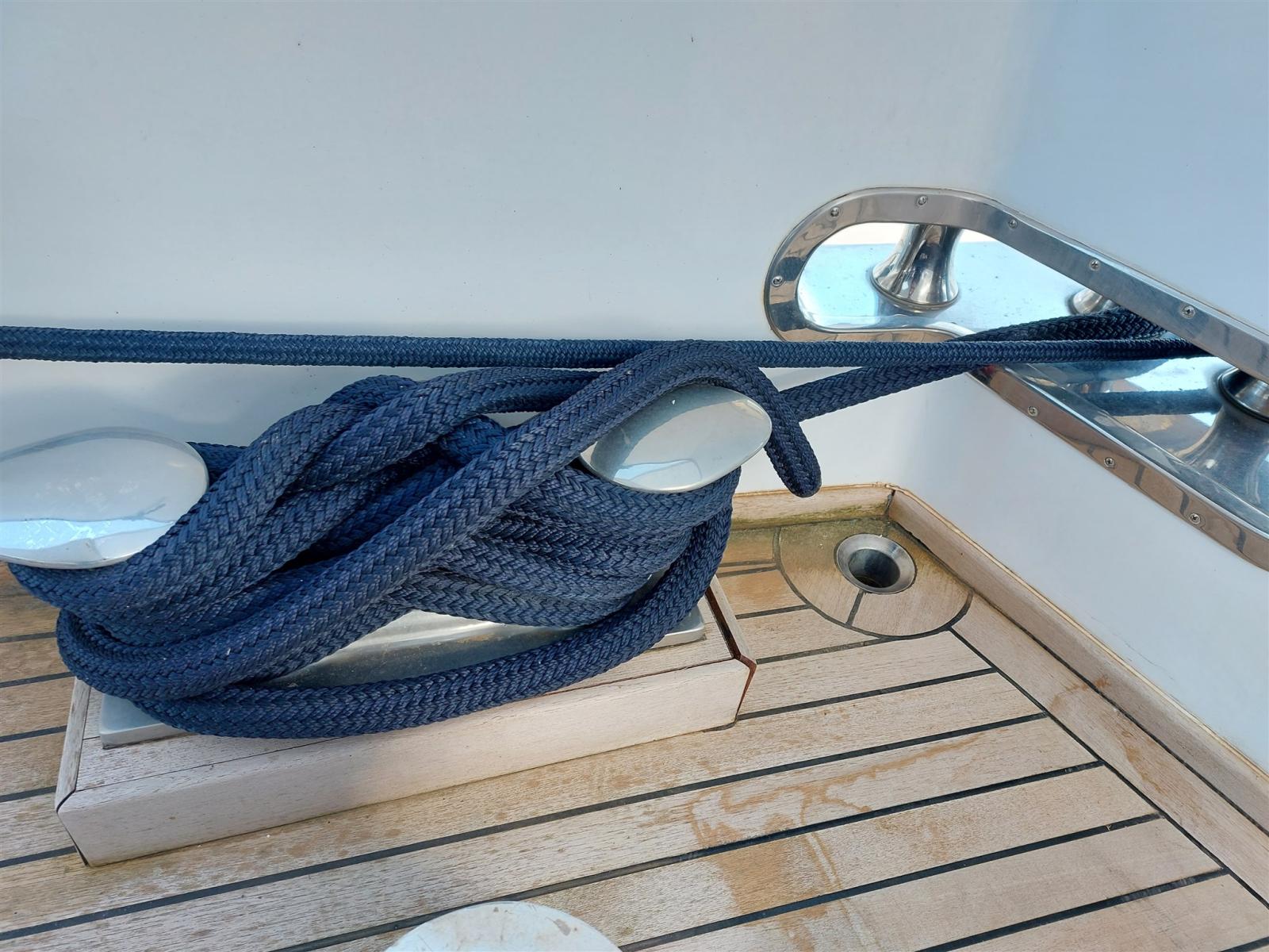 2 Alarme gaz, 2 Alarme moteur, 2 Alarme de pompe de cale, Eau sous pression, 2 Passavant en teck, Douche de cockpit, Double barre à roue, Phares fixes arrière, Extincteur(s) fixe(s), Lavage de chaine, Éclairage de courtoisie, Passerelle (Opac Mare), Plateforme arrière, Porte latérale, 2 Porte latérale, Cockpit en teck, Prise de quai, Connexion eau sous pression à quai, Guindeau électrique, Echelle de bain, table de cockpit, Corne, Winch électrique arrière, Winch électrique avant.