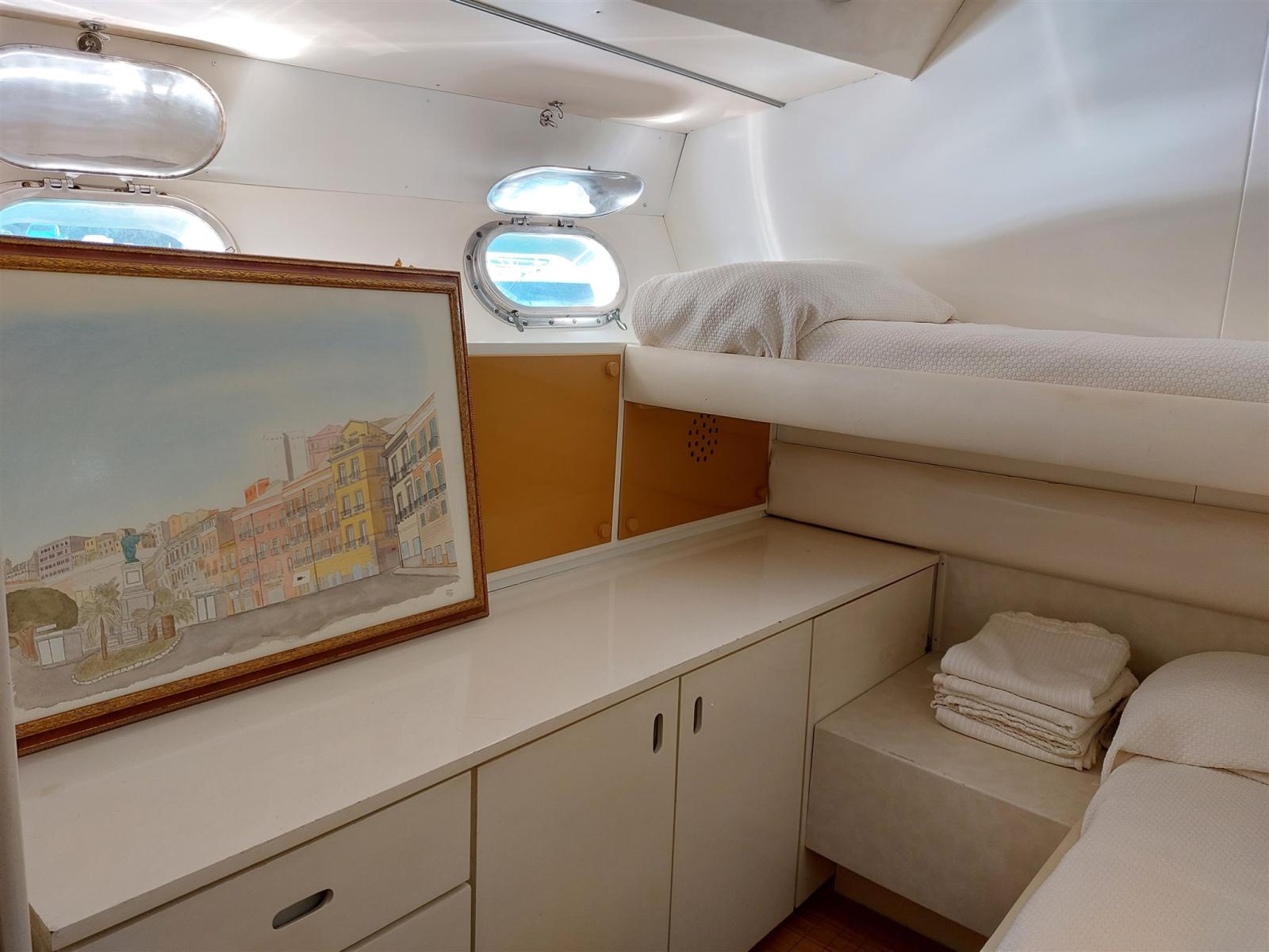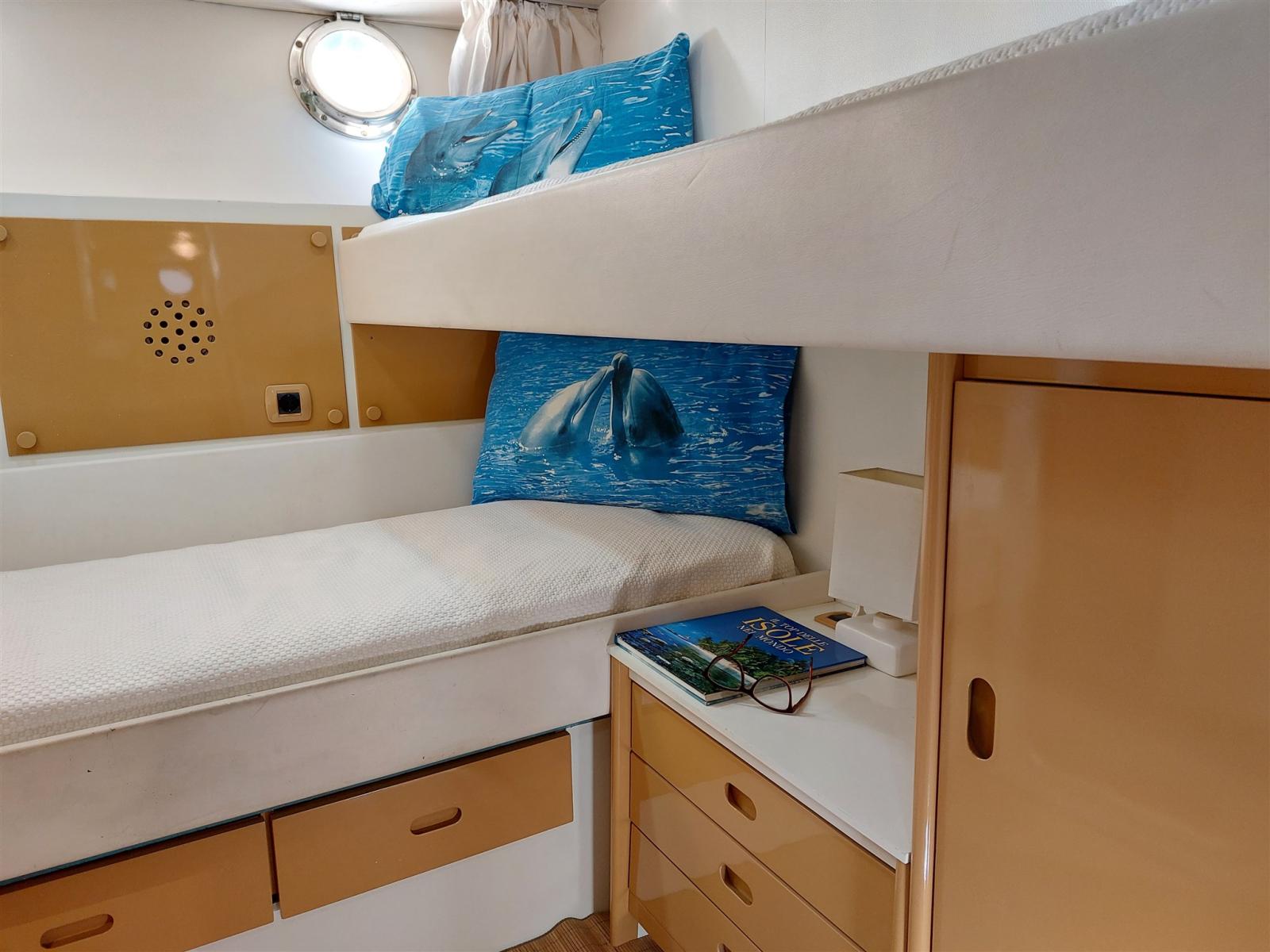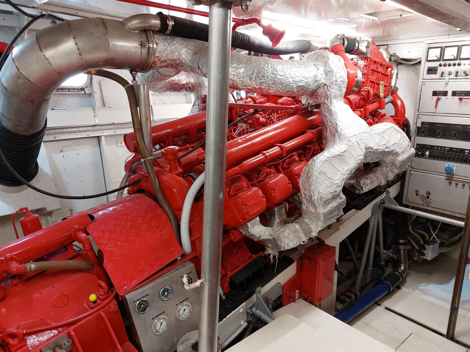 Air conditionné (Salone e cabina armatoriale), Ballon d'eau chaude (bivalente 100L), Convertisseur (Mastervolt 24-2005), Prises interieures 12v, Prises interieures 220v, 4 Toilettes électriques.