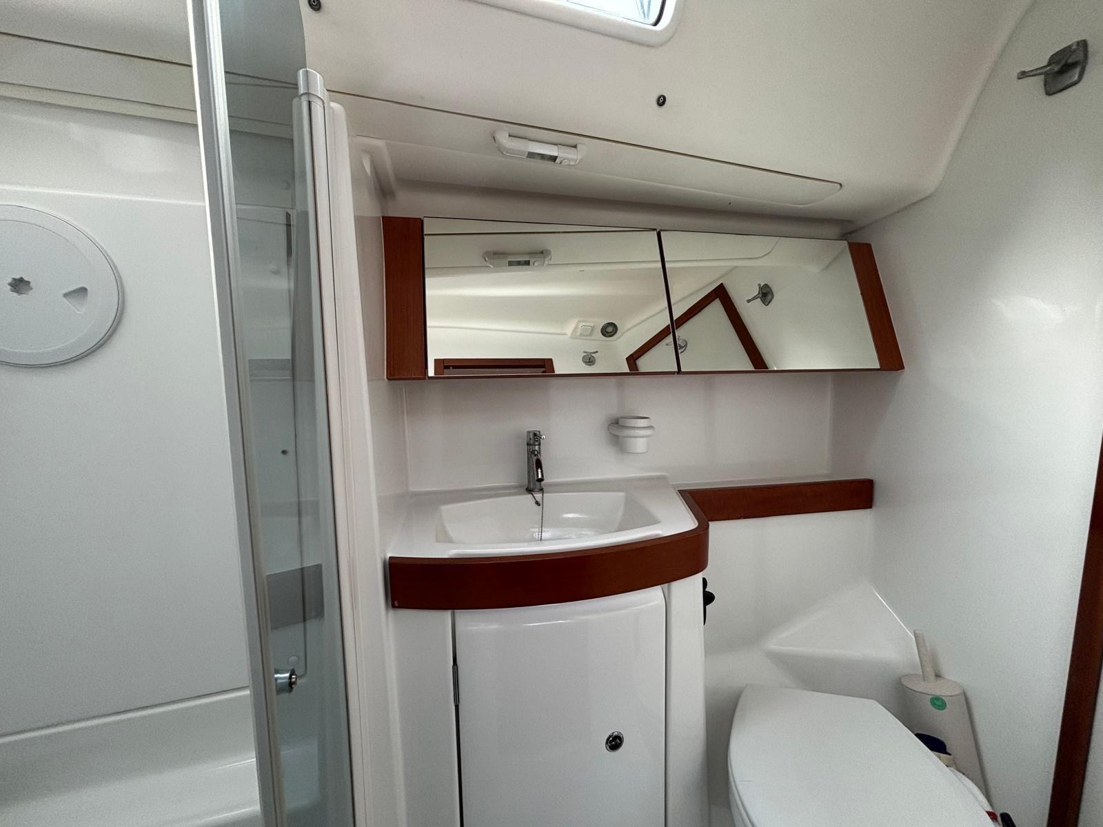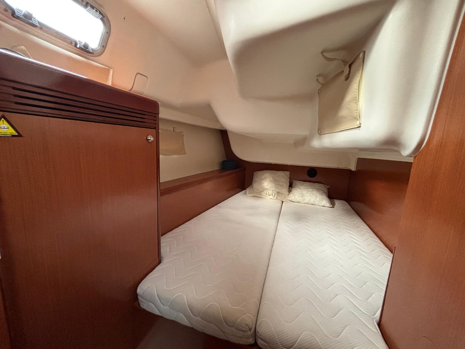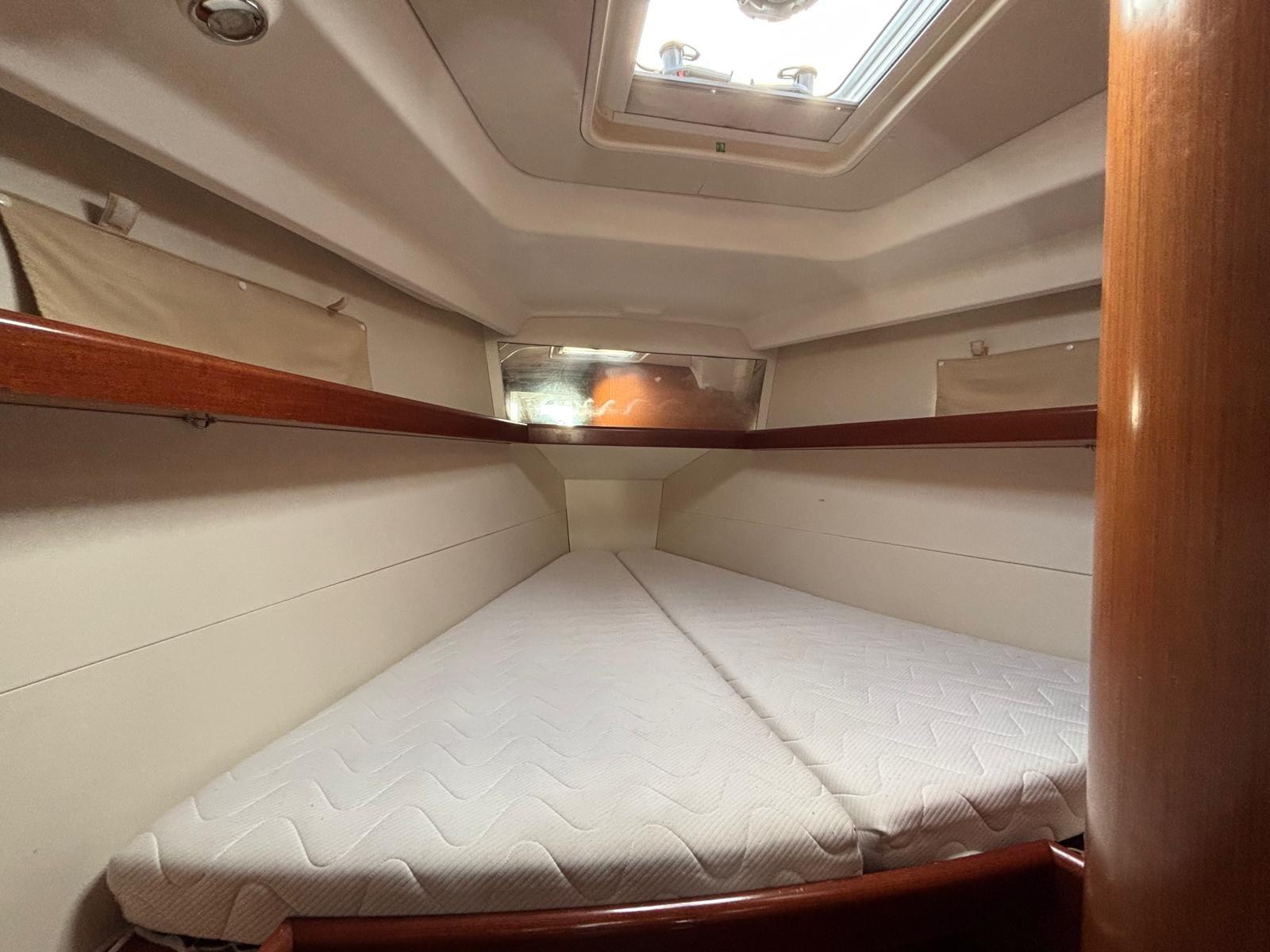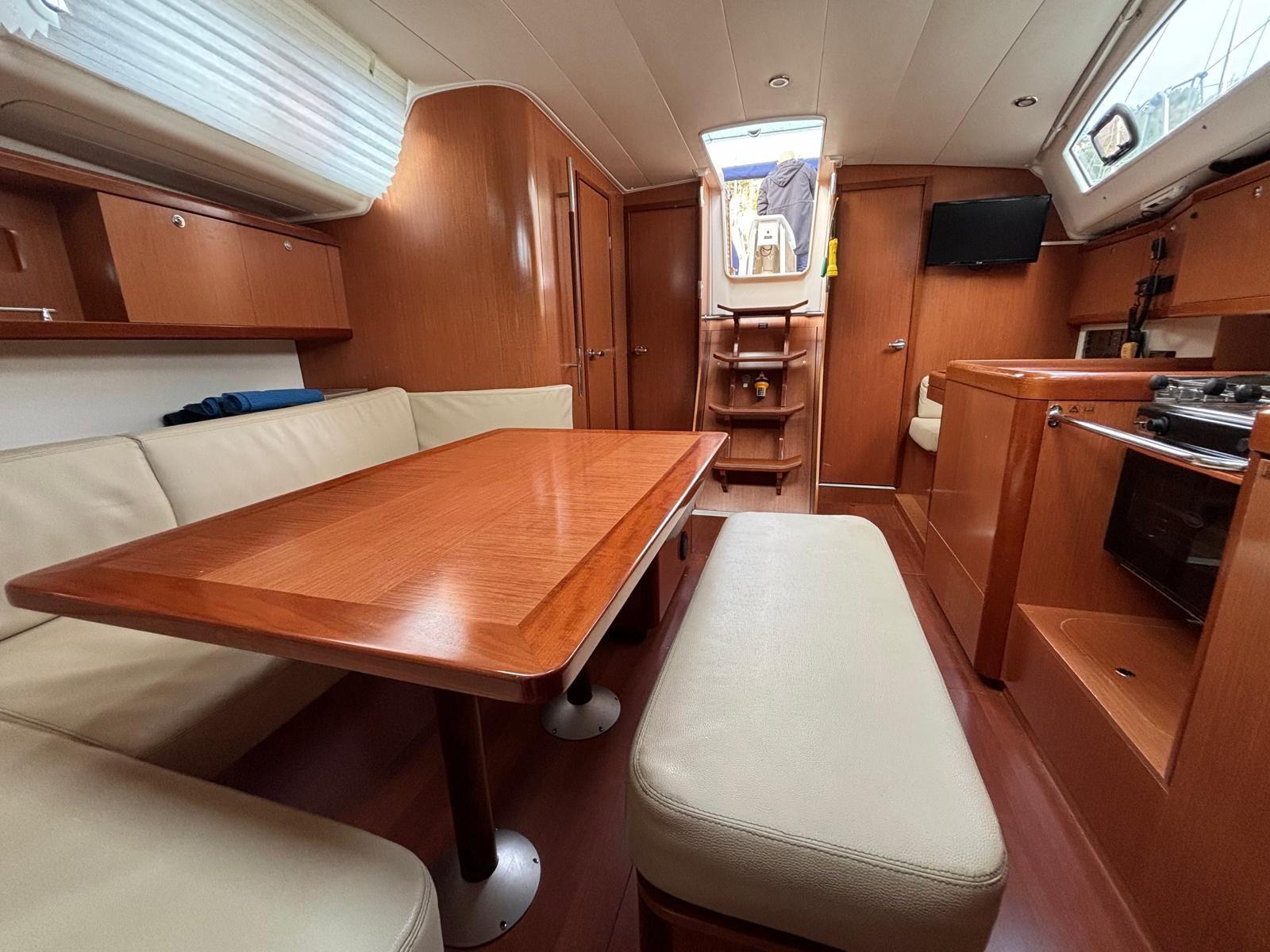 Ce modèle dispose de 3 cabines doubles spacieuses et de 2 salles de bain avec WC, offrant un excellent niveau de confort pour la famille ou les invités. L’intérieur est chaleureux, lumineux et parfaitement pensé pour la vie à bord. Un convertisseur est installé pour une autonomie électrique accrue. Enfin, le confort à bord est renforcé par un chauffage Webasto de 5500 W distribué dans tout le bateau, permettant de naviguer et vivre à bord toute l’année. Un voilier prêt à partir, bien équipé et soigneusement entretenu.