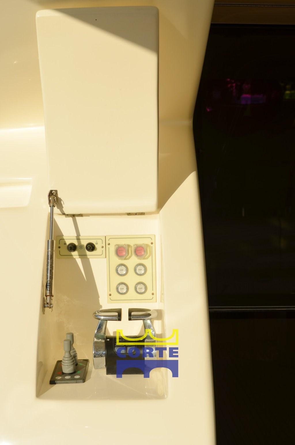 Troisième poste de pilotage dans le cockpit, système de gestion et de surveillance intégré Système électrique « gi8 » avec écran tactile, Cabine équipage en option : double supplémentaire au lieu d’un espace de rangement, 2 séparateurs de fumée pour générateur, 2 paires de lumières supplémentaires pour les passerelles latérales, 2 lumières sous-marines au xénon, veilleuses pour l’escalier d’accès à la cabine, parois de douche dans la salle de bain du propriétaire avec mosaïque, stores romains doubles dans la cabine du propriétaire, stores romains doubles dans le salon et la salle à manger, prise de connecteur avec télécommande de série pour bossoir