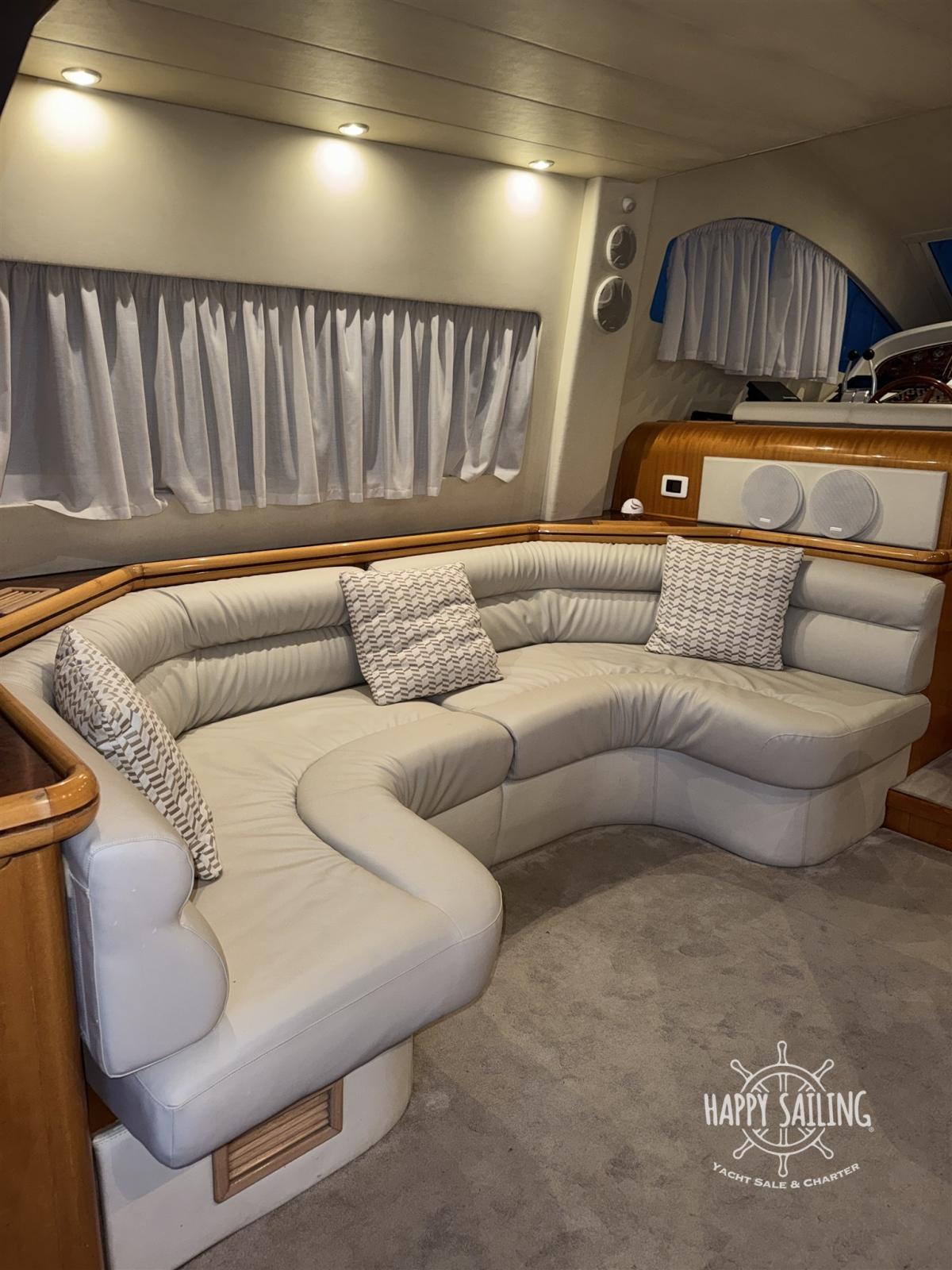 Eau sous pression, Douche de cockpit, Double barre à roue, Flaps fixes, Flaps hydrauliques, Lavage de chaine, Éclairage de courtoisie, Passerelle, Plateforme arrière, Pompe de cale automatique, Cockpit en teck, Prise de quai, Onduleur, Guindeau électrique, Echelle de bain, table de cockpit.