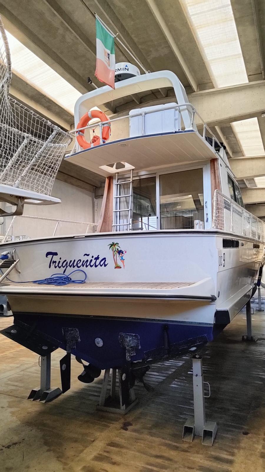 Eau sous pression, Douche de cockpit, Flaps hydrauliques, Éclairage de courtoisie, Plateforme arrière, Cockpit en teck (flexiteek), Prise de quai, Rollbar, Guindeau électrique, Echelle de bain, Corne.