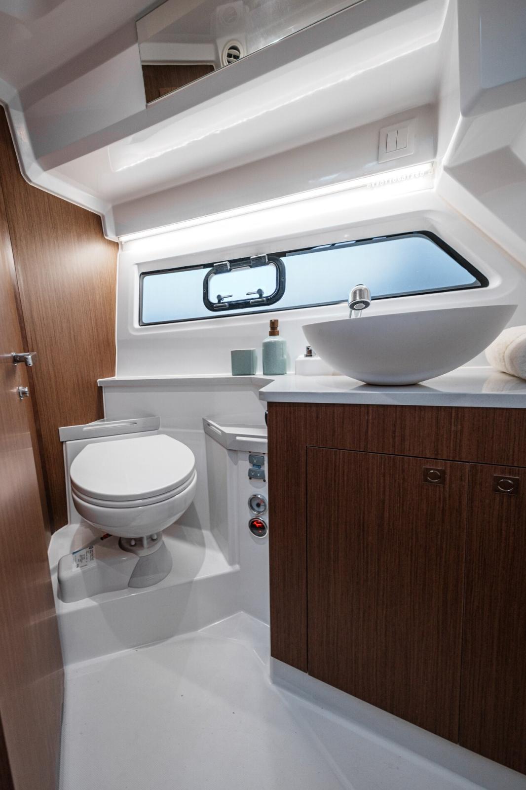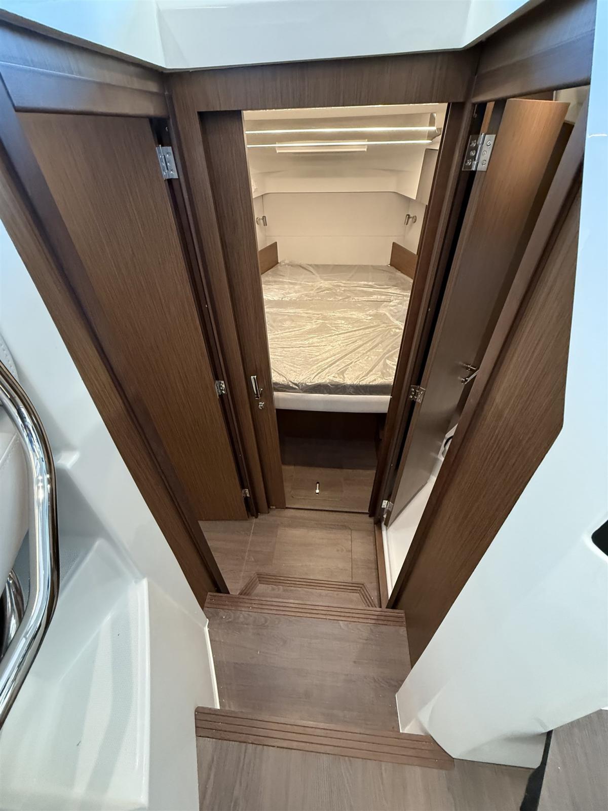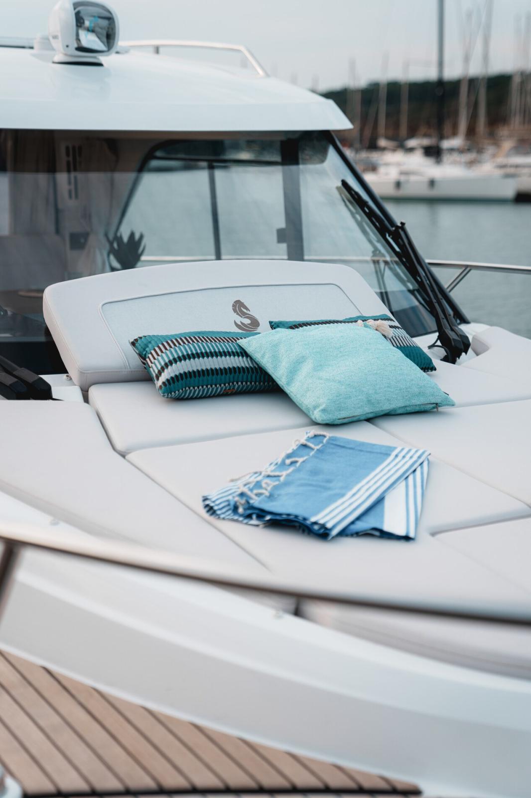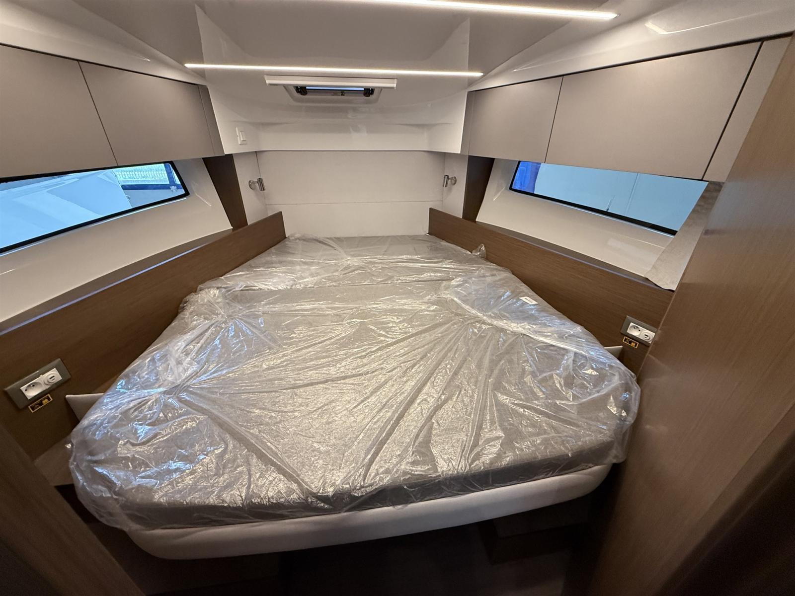 Alarme moteur, Eau sous pression, Douche de cockpit, Flaps électriques, Indicateurs de flaps, Éclairage de courtoisie, Plateforme arrière, Pompe de cale manuelle, Porte latérale, Prise de quai, Guindeau électrique, Echelle de bain, table de cockpit, Table pliante de salon, Corne.