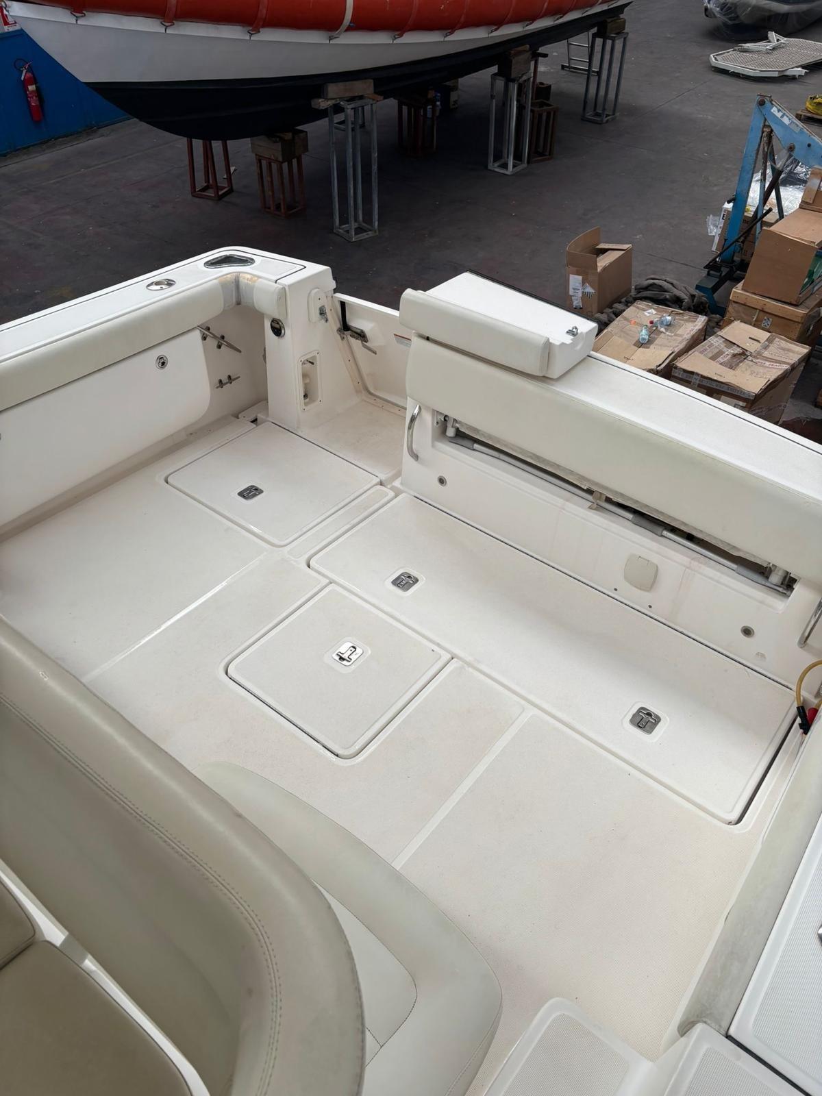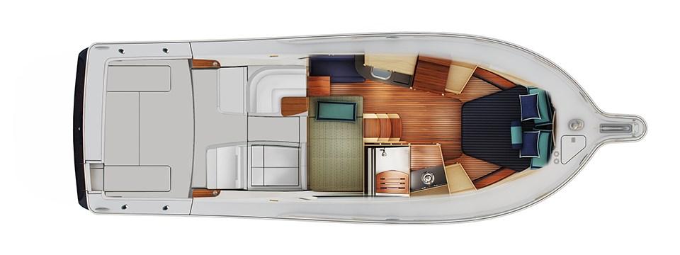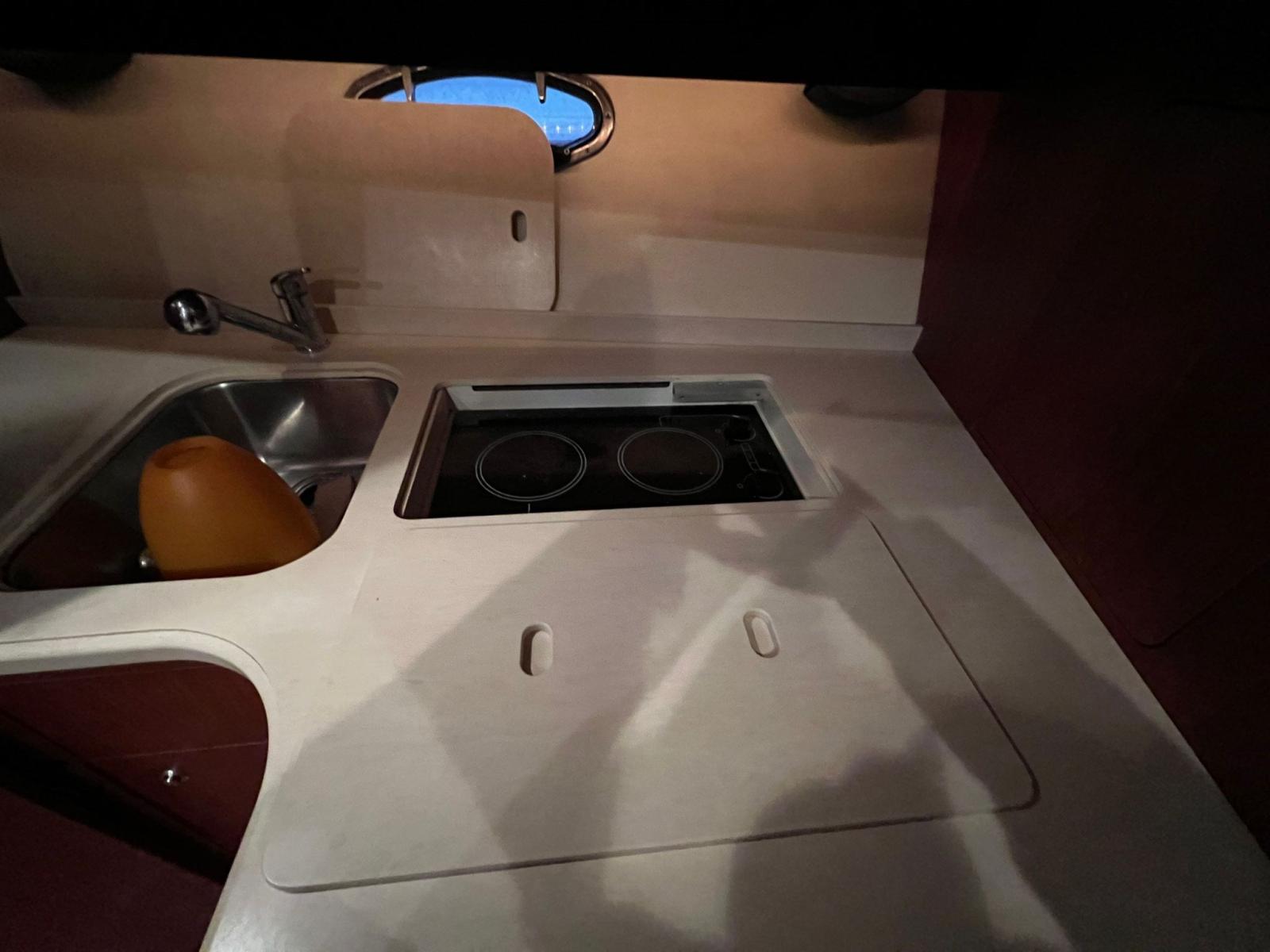 Alarme gaz, Alarme moteur, Alarme de pompe de cale, Eau sous pression, Batteries (nuove 2024), Douche de cockpit, Flaps hydrauliques, Extincteur(s) fixe(s), Plateforme arrière, Pompe de cale automatique, Prise de quai, Guindeau électrique, Echelle de bain, Table pliante de salon, Corne.