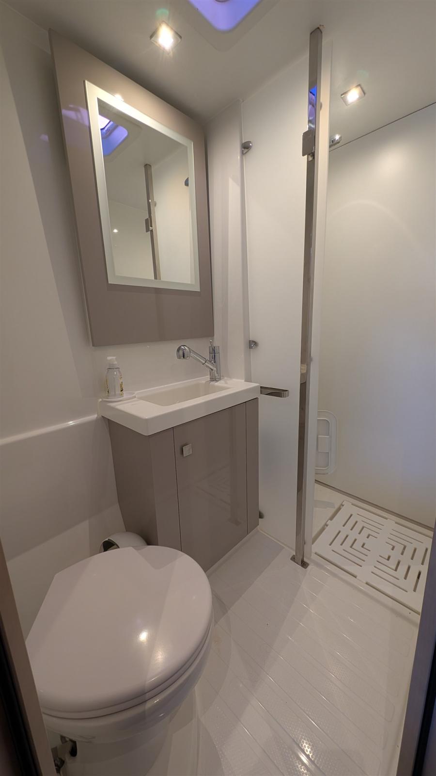 Eau Chaude, Ballon d'eau chaude, Coffre-fort, Dessalinisateur, Indicateur du réservoir de carburant, Jauge de Réservoir d’Eau, Indicateur de pression d’huile, Indicateur de température moteur, Plancher intérieur en bois (STRATIFIE), 8 Prises interieures 12v, 8 Prises interieures 220v, Réservoir d'eau noire, Voltmètre, 4 Toilettes électriques, Toilettes manuelles.