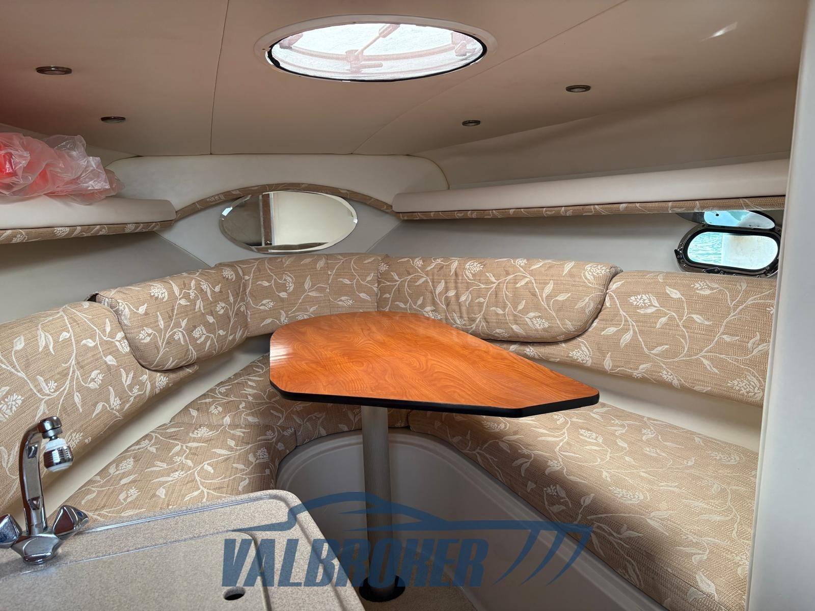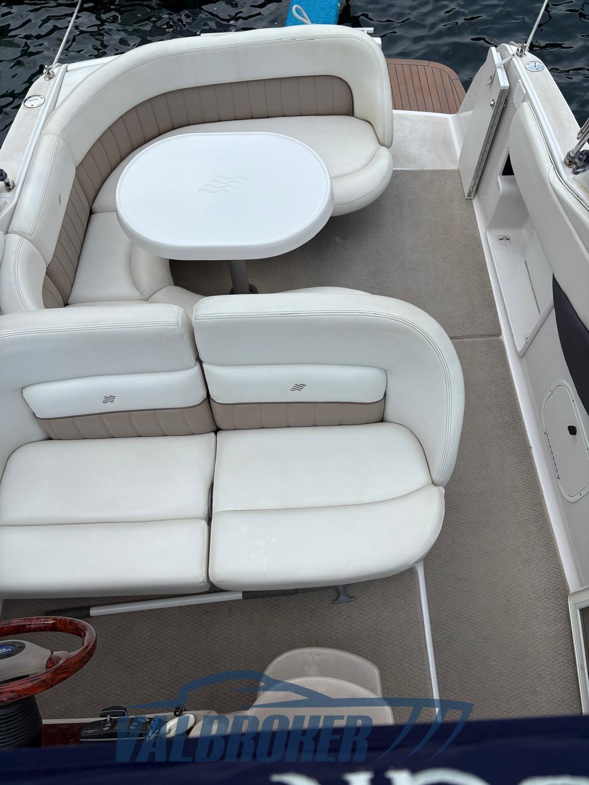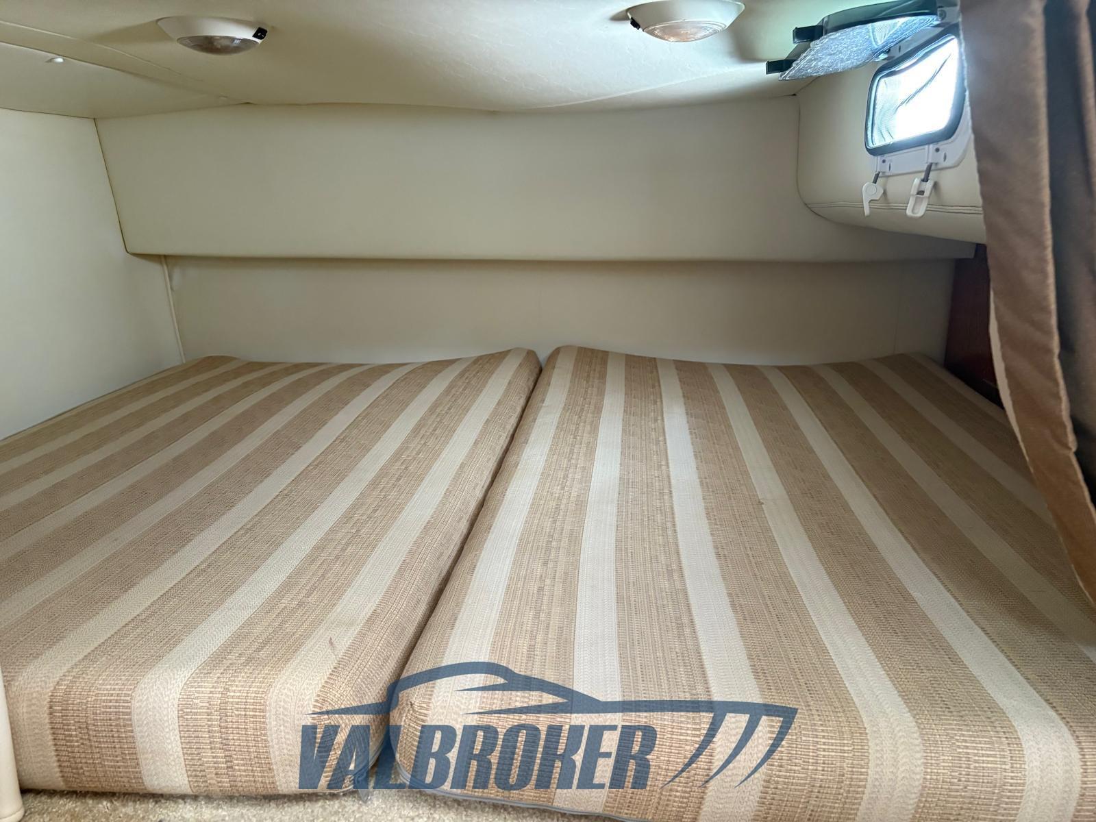 En dessous, il y a 4 lits et une salle de bain séparée. Contrôle stéréo Clarion dans le cockpit, radio VHF jamais utilisée, coussins en parfait état, plateforme flexible.