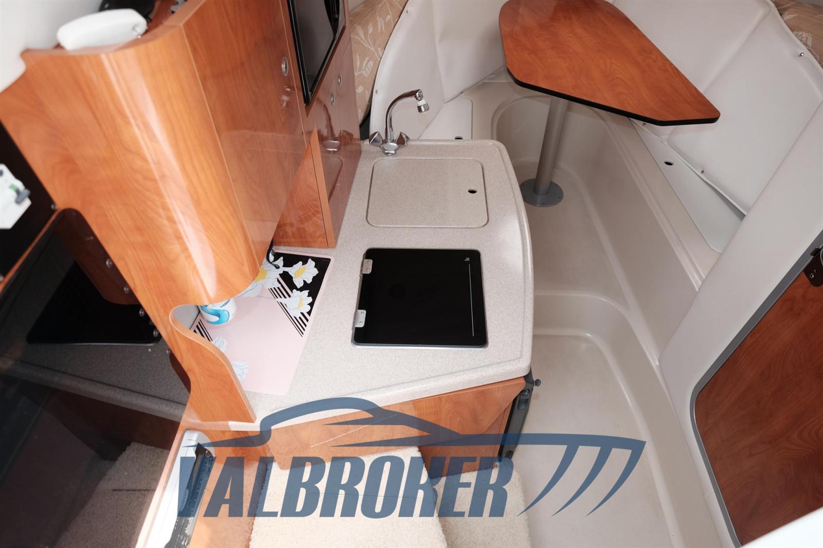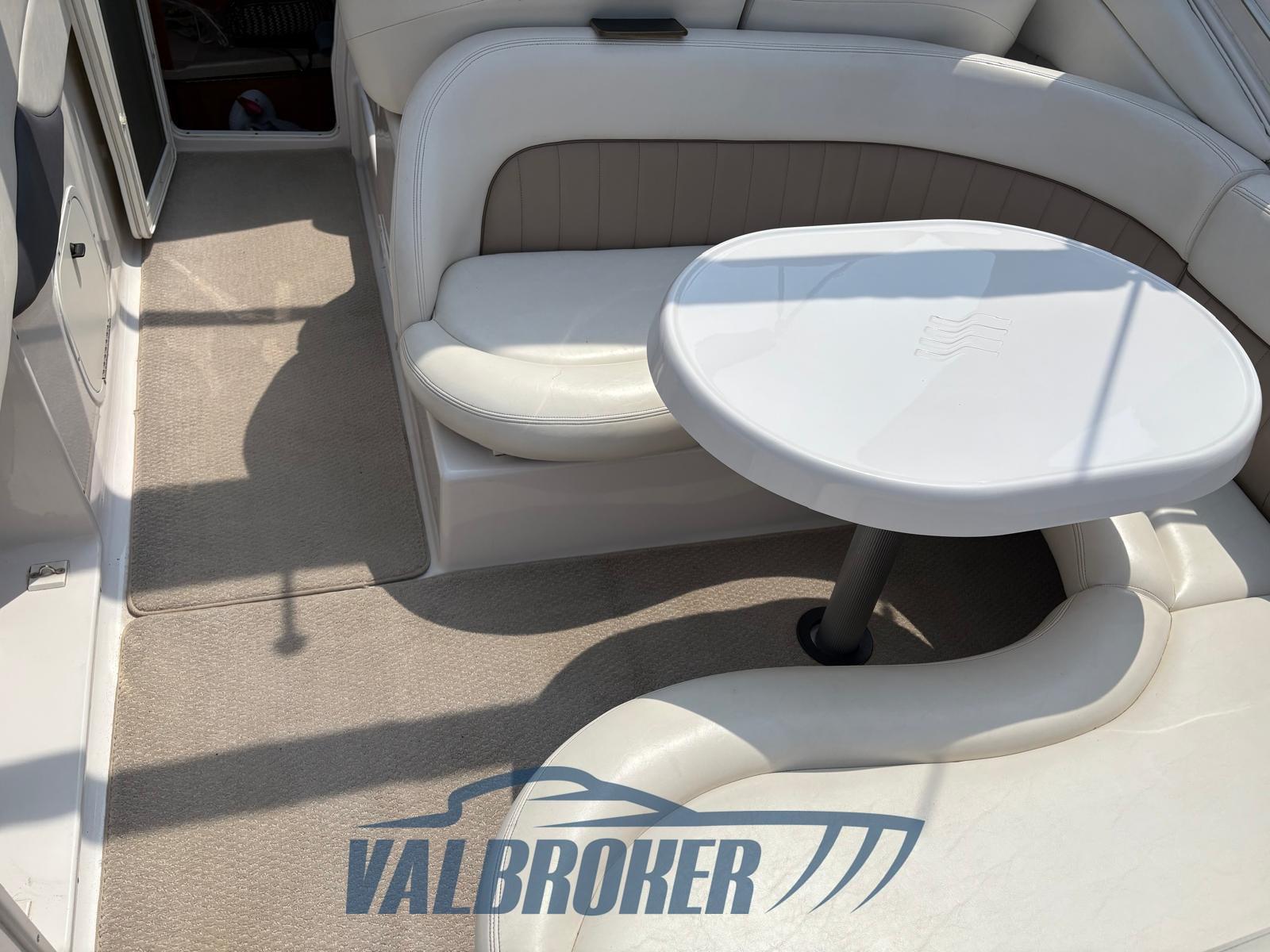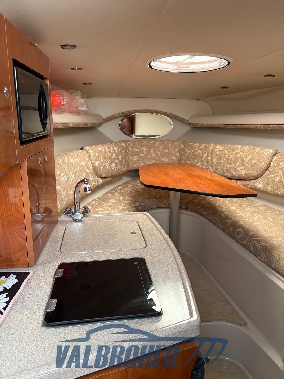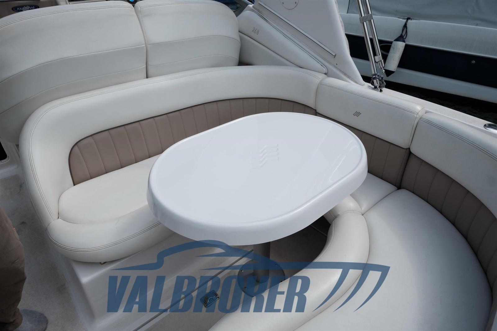 En dessous, il y a 4 lits et une salle de bain séparée. Contrôle stéréo Clarion dans le cockpit, radio VHF jamais utilisée, coussins en parfait état, plateforme flexible.