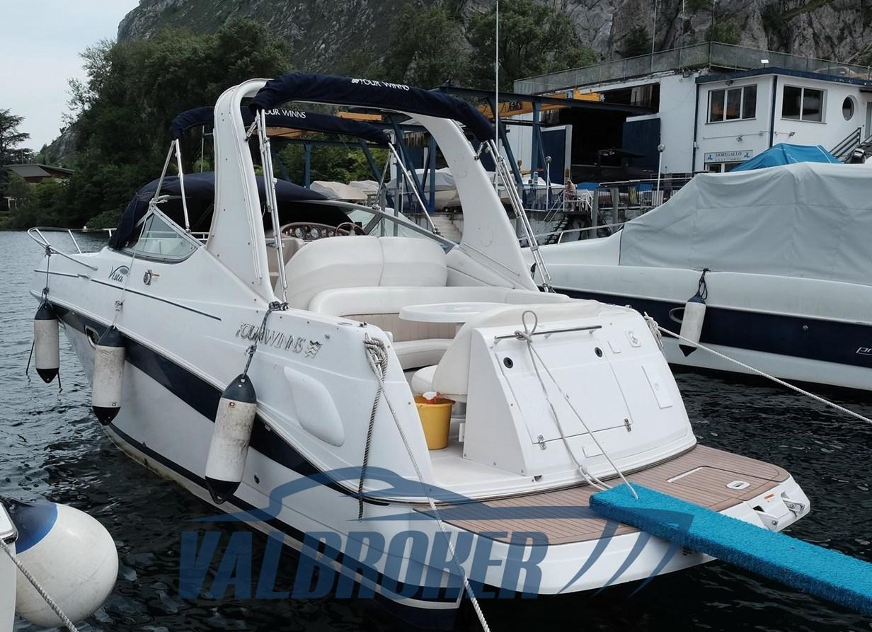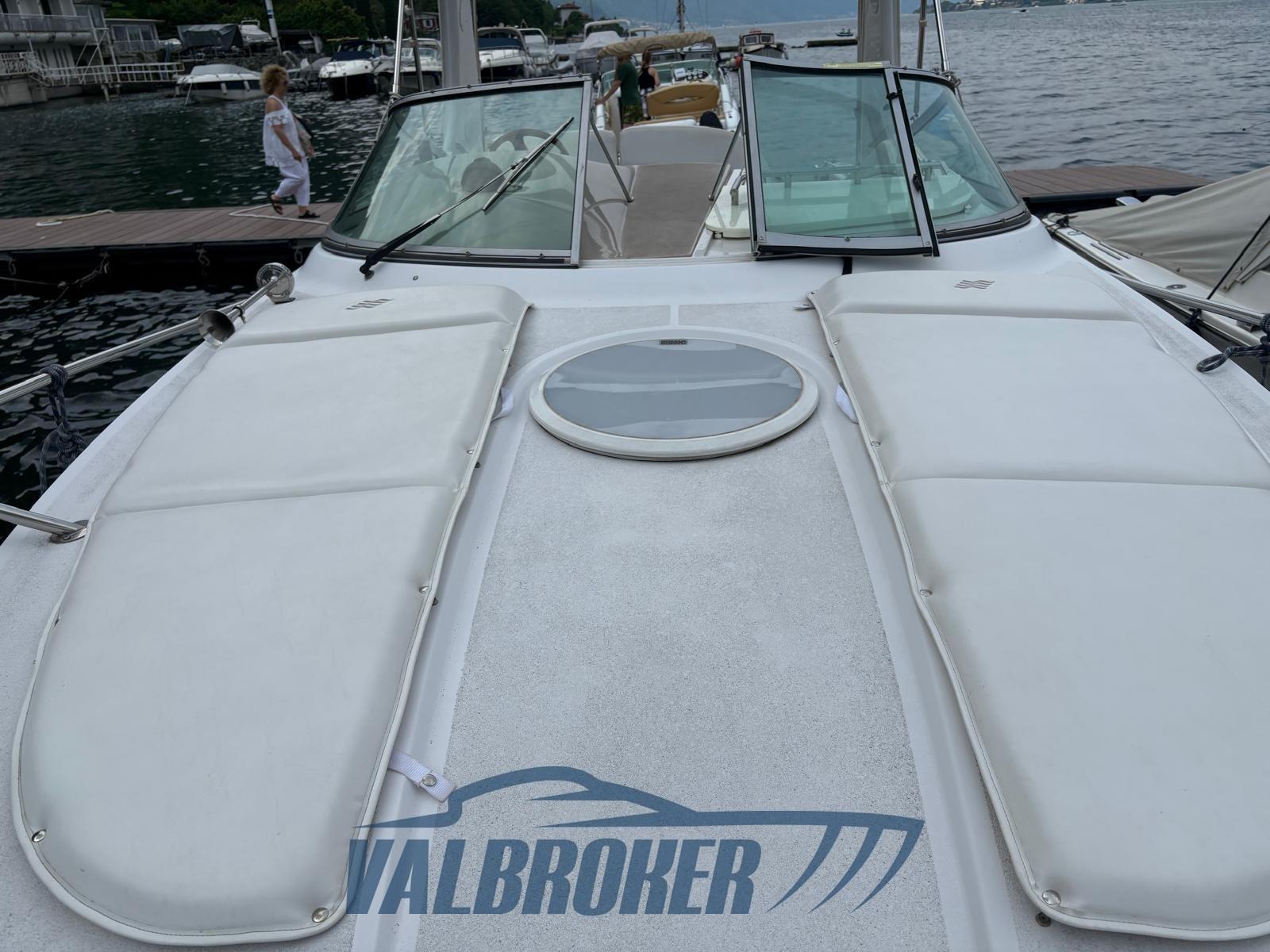 Bateau sans plaque visible sur le lac de Côme. Propulsé par un moteur essence V8 1xVolvo Penta 5.7 GiE avec seulement 287 heures de moteur. Utilisé uniquement en eau douce. Passage central pratique pour atteindre la proue.