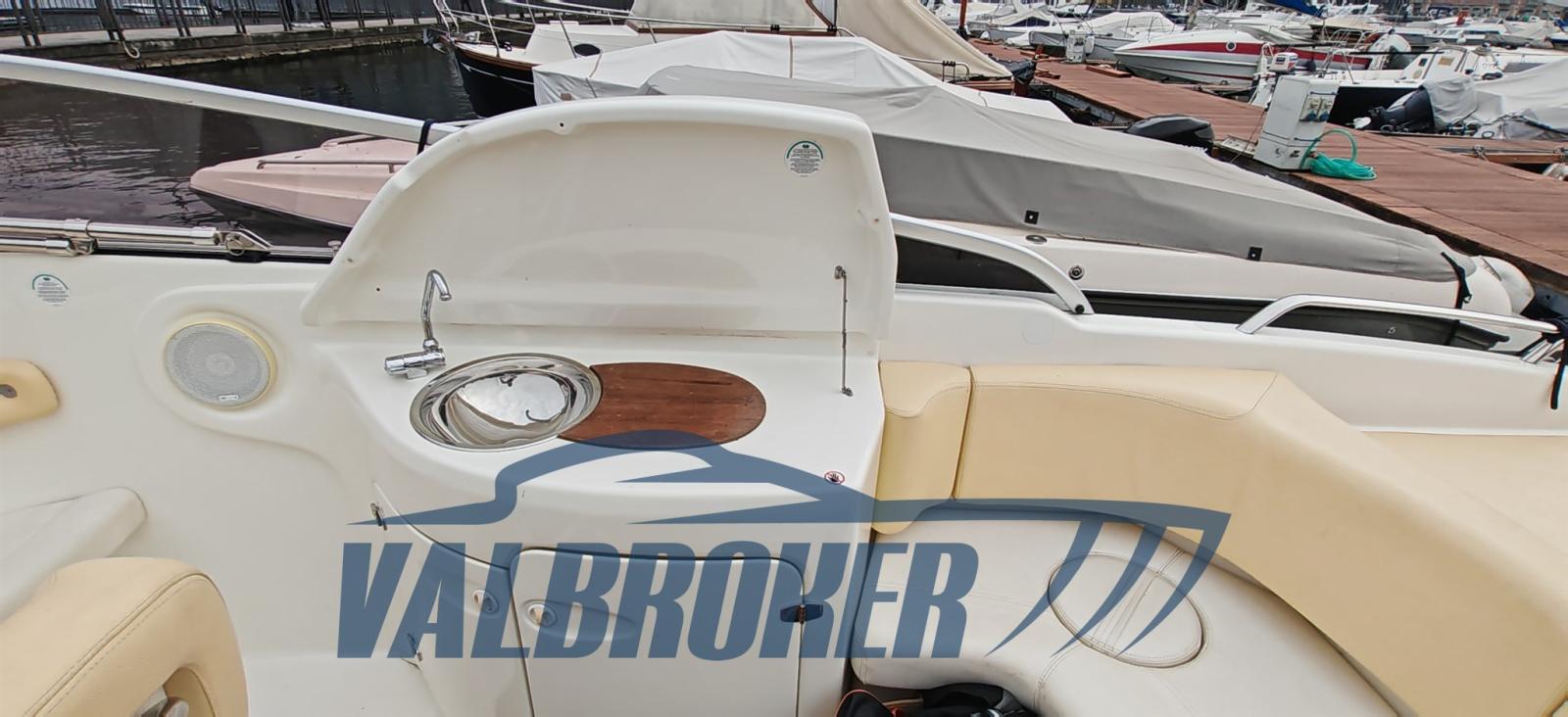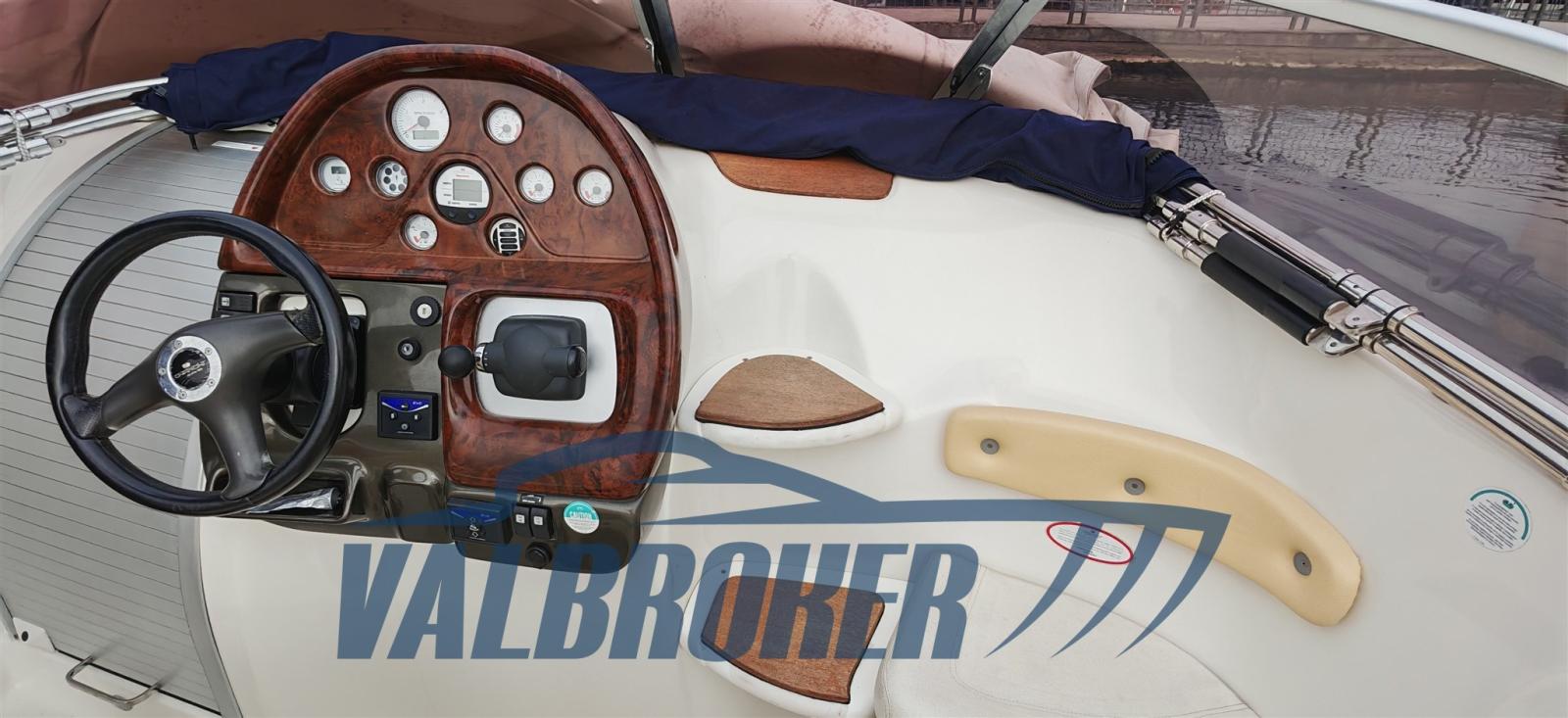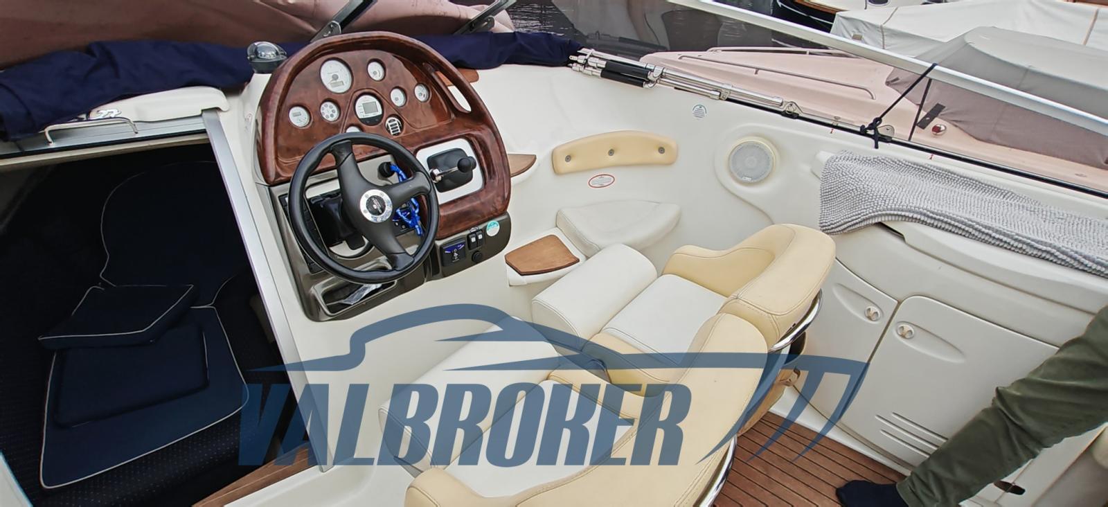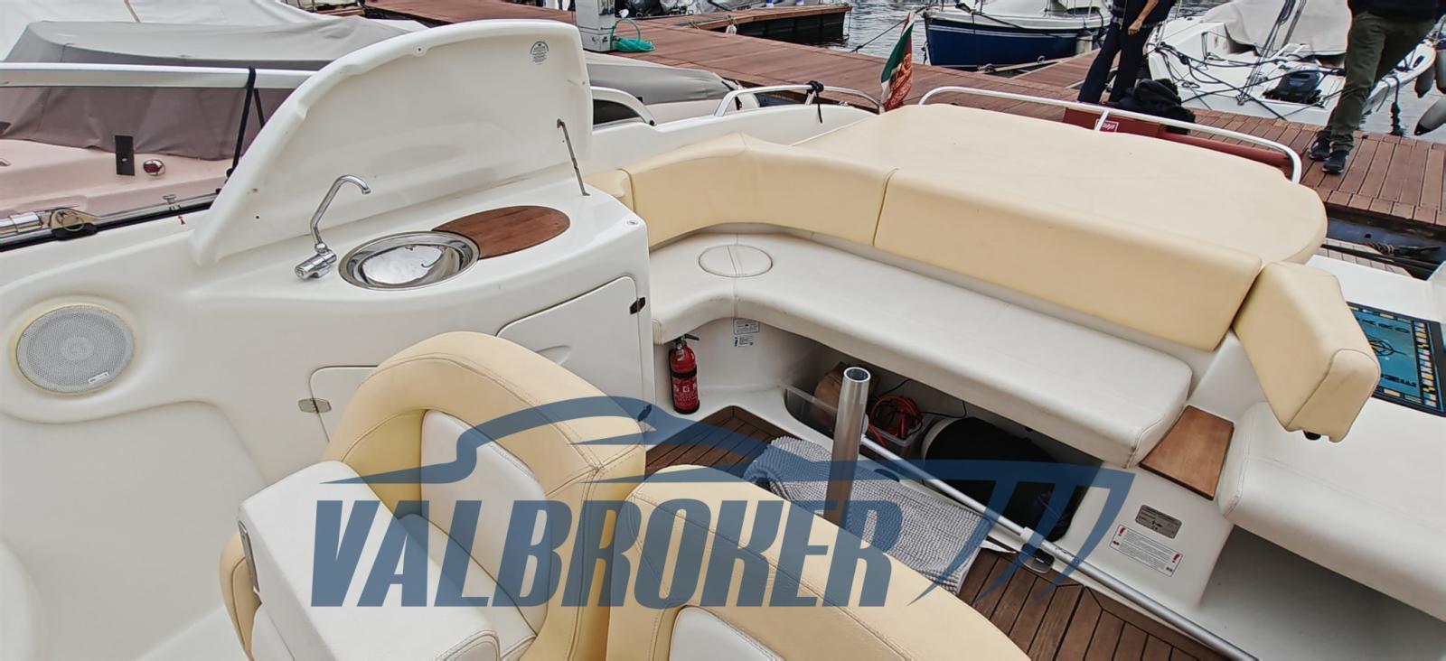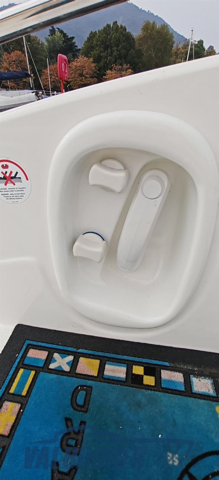 Ouverture du compartiment moteur électrique, Eau sous pression, 2 Batteries, Douche de cockpit (Caldo/freddo), Flaps hydrauliques, Crochet de remorquage pour ski nautique, Lavabo dans le cockpit, Éclairage de courtoisie, Spots sous-marins, Plateforme arrière (Teak), Guindeau électrique, Echelle de bain, table de cockpit.