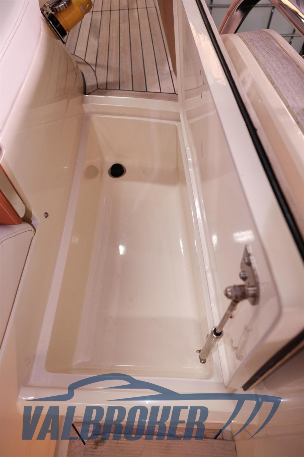 Ancre (Inox, catena 50 M), Eau sous pression, 2 Batteries, Passavant en teck, Douche de cockpit, Propulseur d'étrave (Quick), Flaps électriques, Lavabo dans le cockpit, Plateforme arrière (Maggiorata teak), 2 Pompe de cale automatique, Cockpit en teck, Guindeau électrique, Echelle de bain, table de cockpit (Teak).