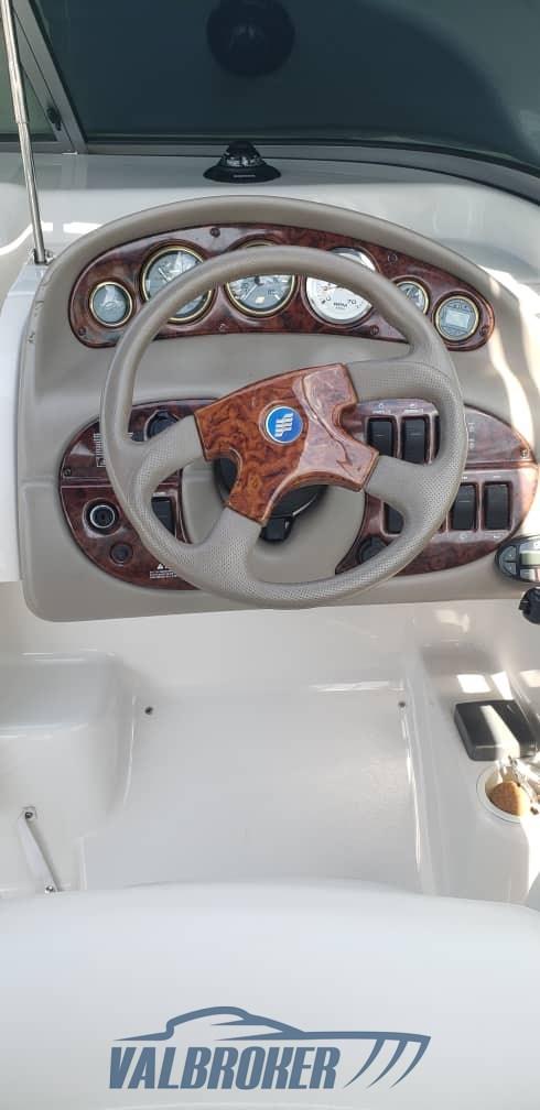 Bateau de croisière sportif américain pratique, sans plaque d’immatriculation, idéal pour les excursions d’une journée. Visible sur le lac Majeur. Propulsé par 1x270 HP Volvo Penta V8 5.0 gxi. Passage central pratique à l’avant. Utilisé en eau douce uniquement.