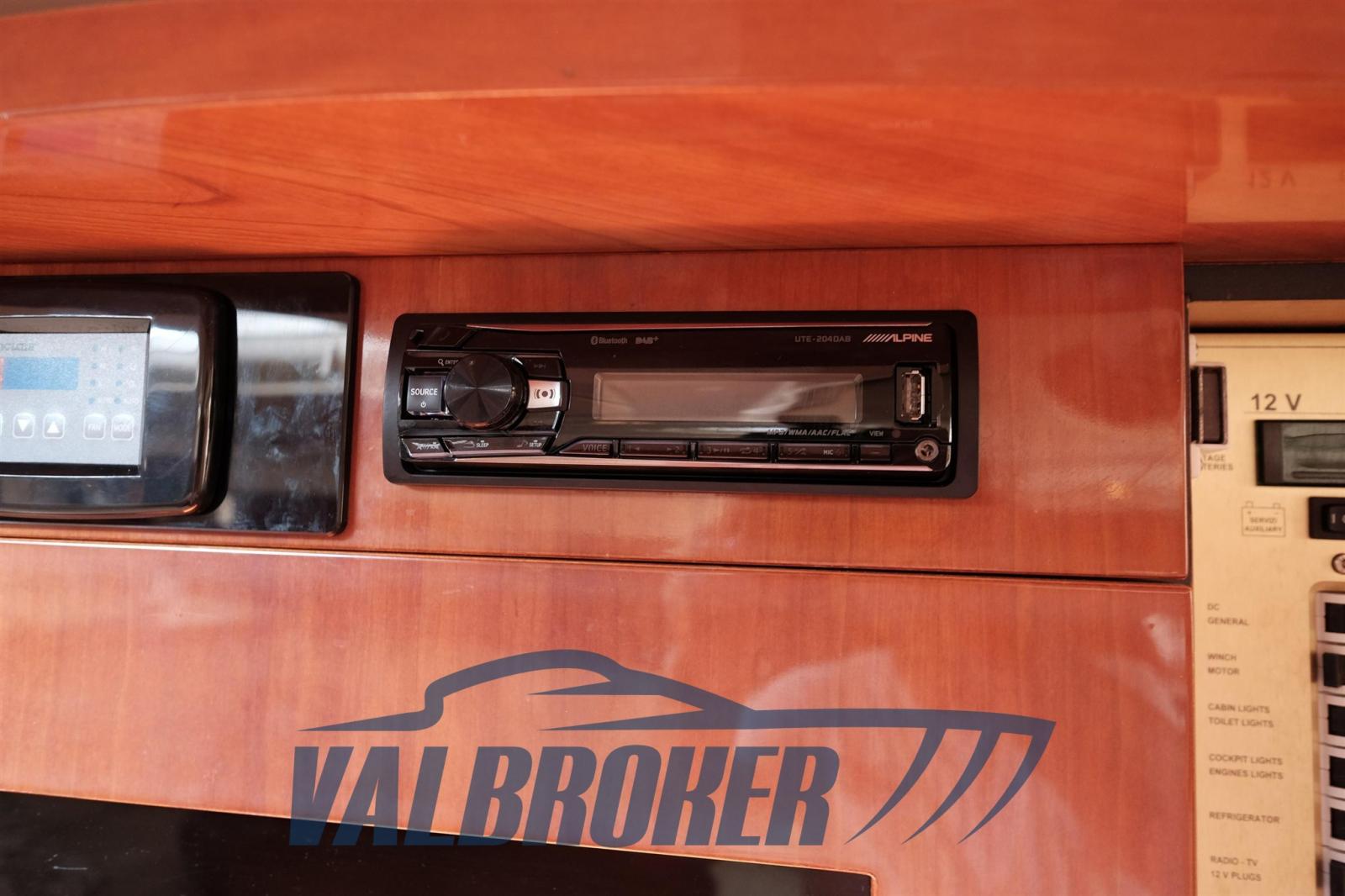 Full optionnel : climatisation chaud/froid, passerelle hydraulique escamotable, voiture pilote, propulseur d’étrave, garage à annexes, générateur, cockpit en teck.