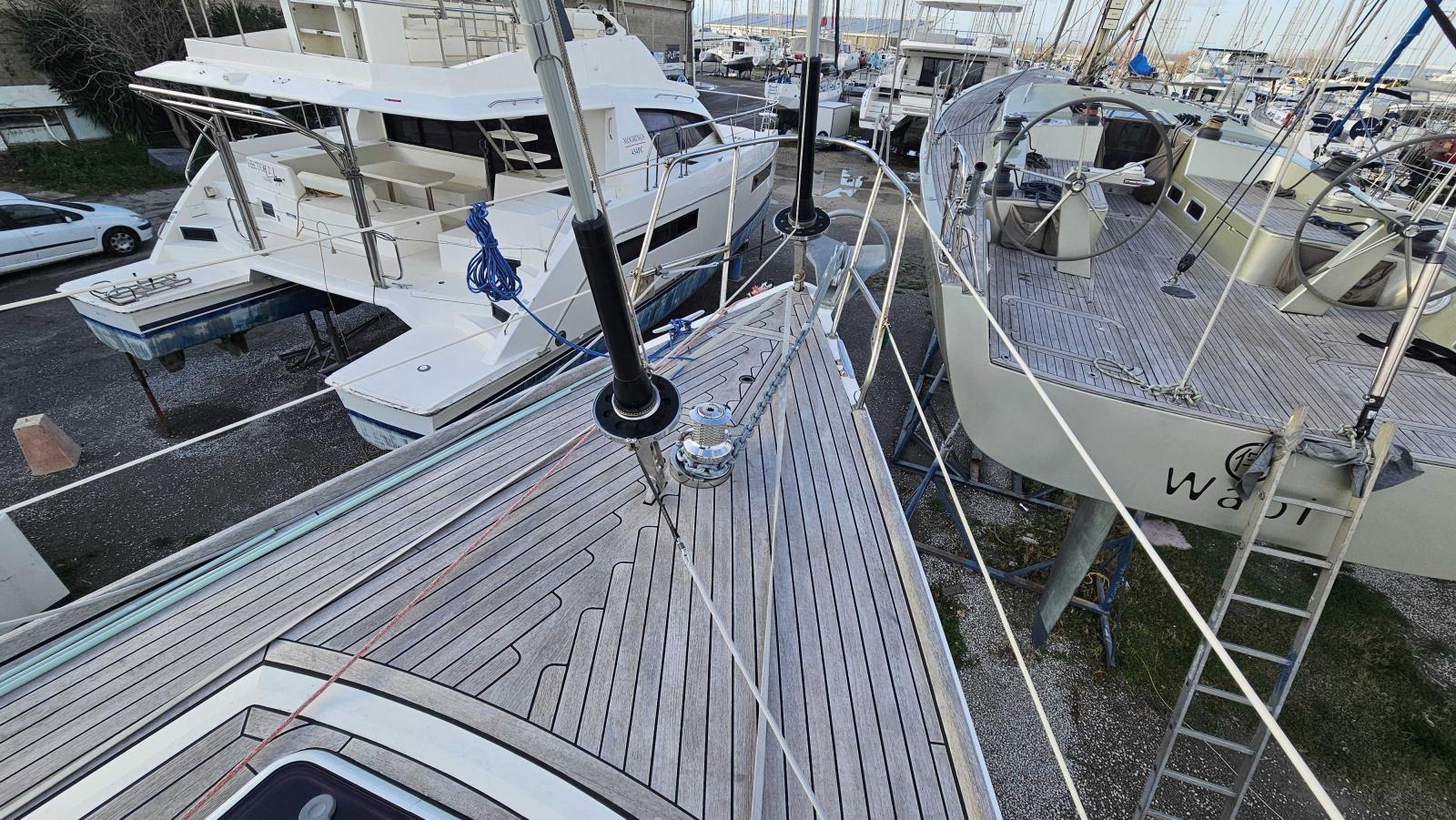 Équipé d'un moteur Yanmar de 75 CV, ce voilier dispose d'une motorisation généreuse garantissant autonomie et sécurité dans toutes les conditions. Les manœuvres au port comme la navigation au moteur sont facilitées par cette puissance adaptée.