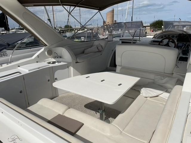Alarme moteur, Ouverture du compartiment moteur électrique (apertura con pistone idraulico), Eau sous pression, 3 Batteries (nuove 2020), Douche de cockpit, Flaps hydrauliques, Indicateurs de flaps, Lavabo dans le cockpit, Éclairage de courtoisie (faretti rollbar nuovi 2023), Plateforme arrière (teack), Pompe de cale automatique, Porte latérale, Prise de quai, Connexion eau sous pression à quai, Onduleur, Rollbar, Guindeau électrique, Echelle de bain, table de cockpit (abbattibile), Table pliante de salon, Corne.