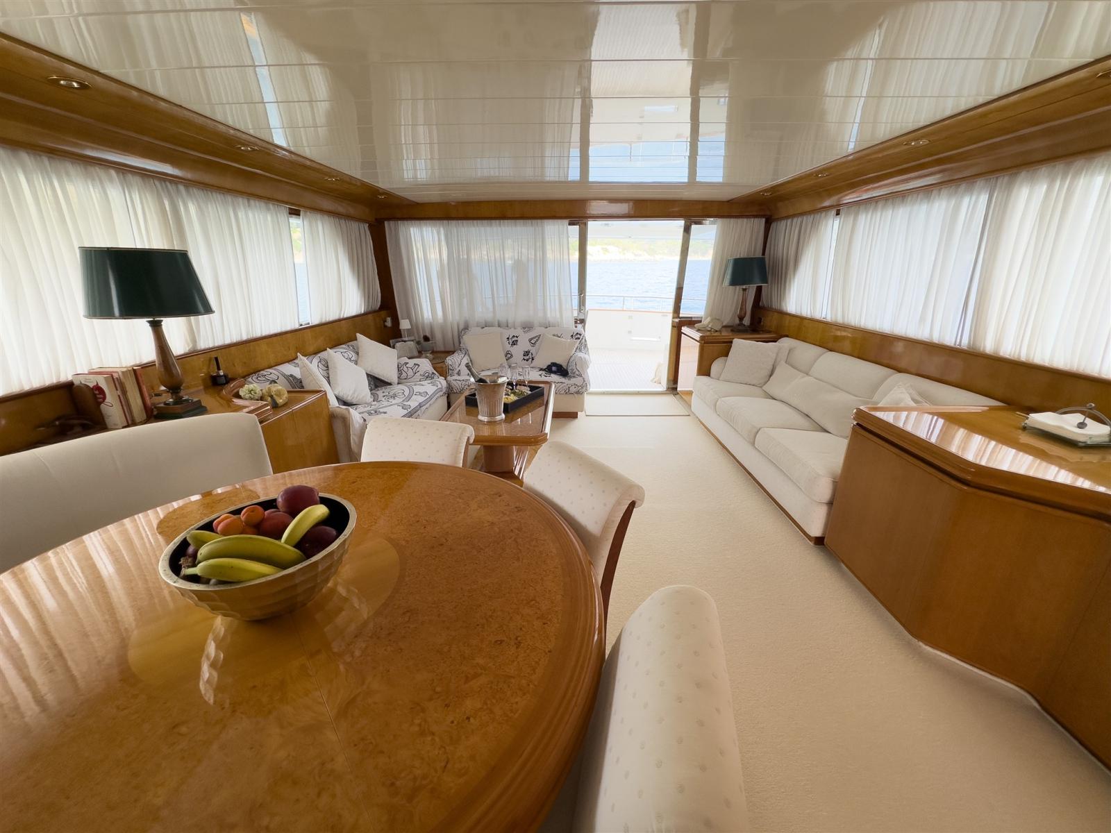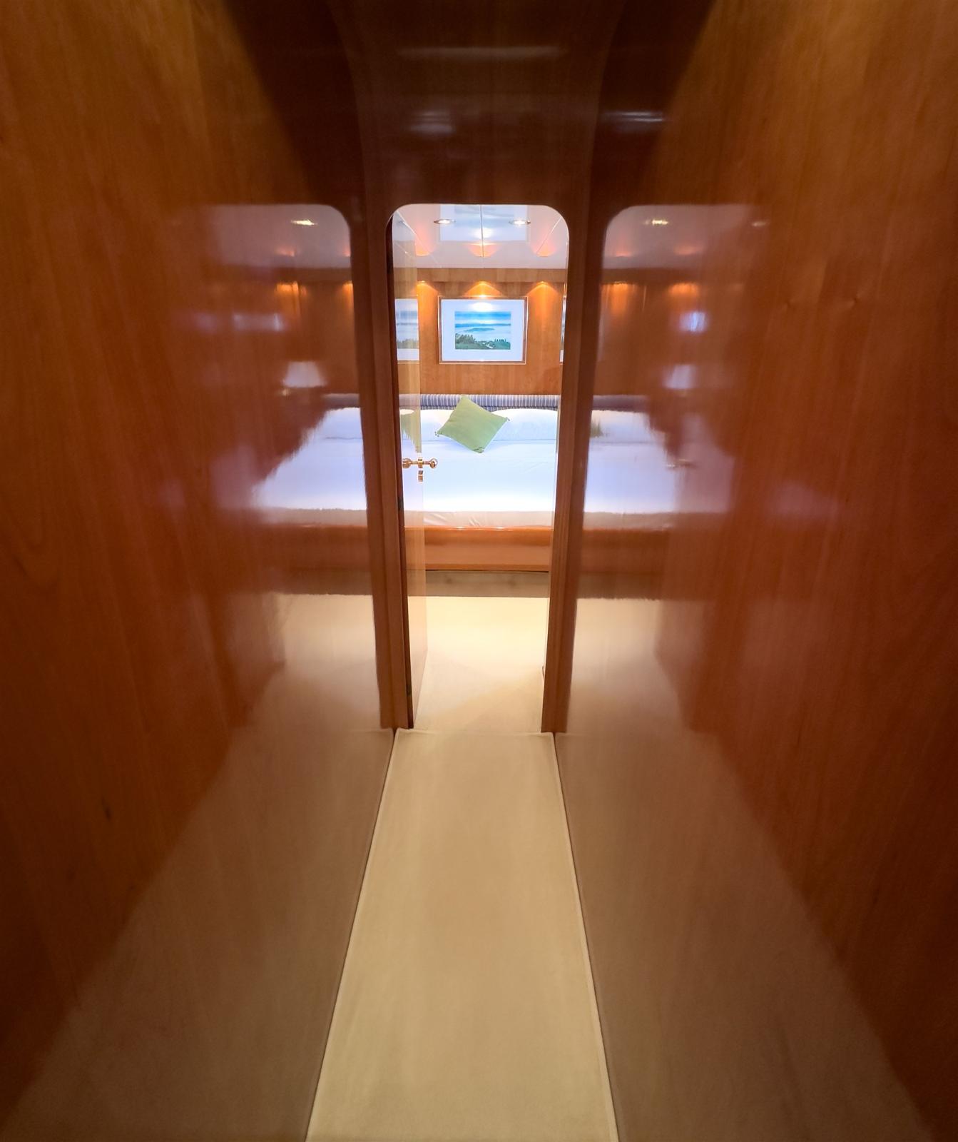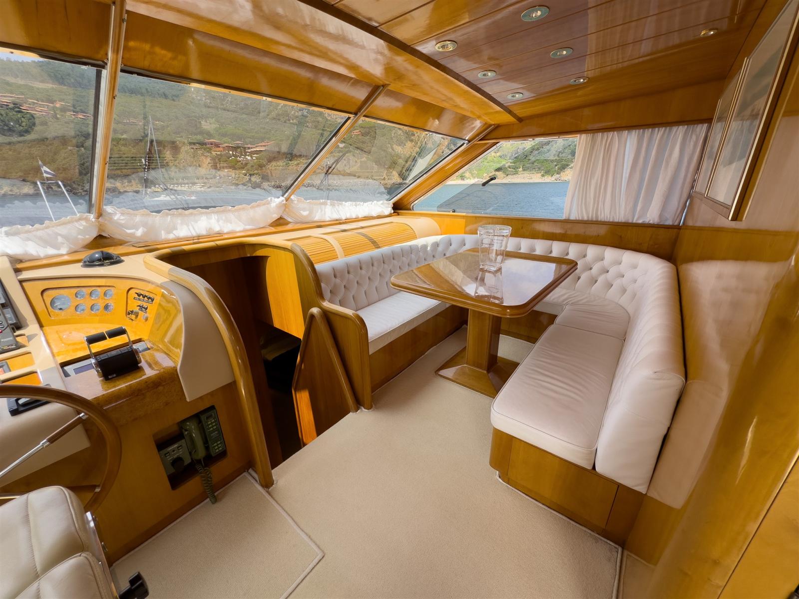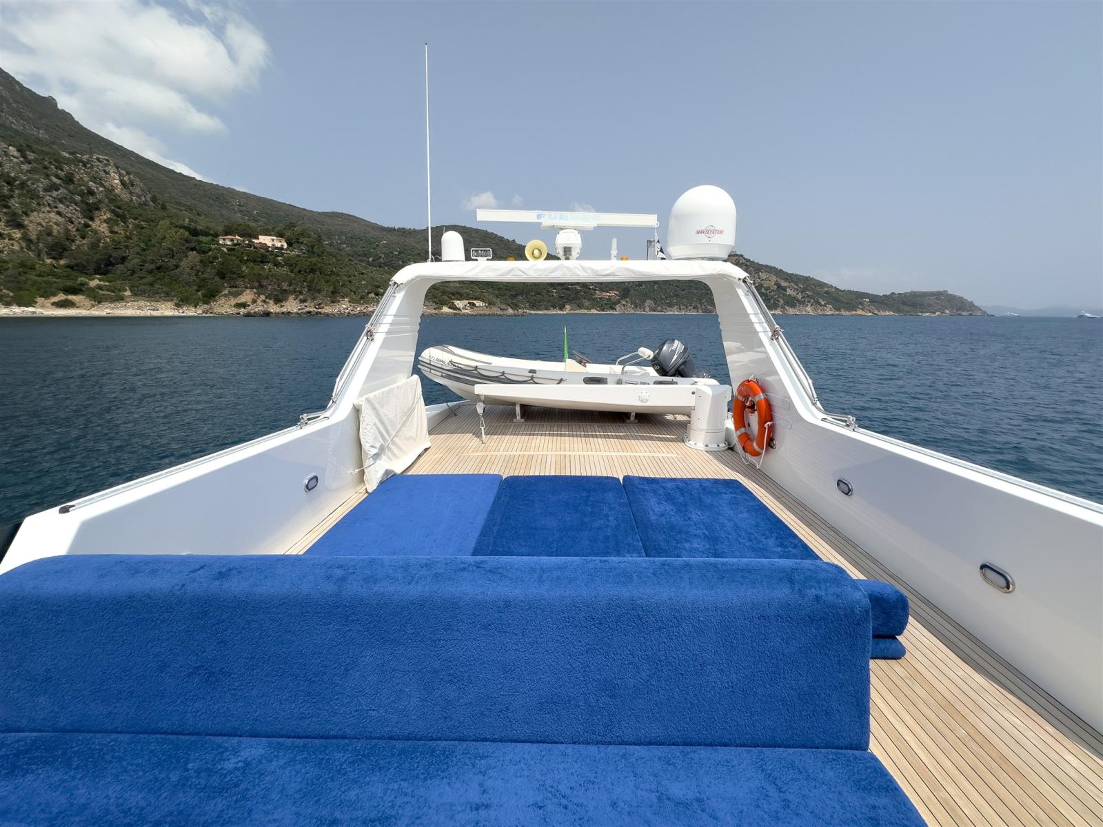 Eau sous pression, Passavant en teck, Douche de cockpit (calda e fredda), Double barre à roue, Grue de flybridge, Éclairage de courtoisie, Passerelle, Prise de quai, Connexion eau sous pression à quai, Echelle de bain, Stabilisateurs (Seakeeper 16), table de cockpit, Annexe (Yamaha 40 cavalli, Novamarine 5 metri).