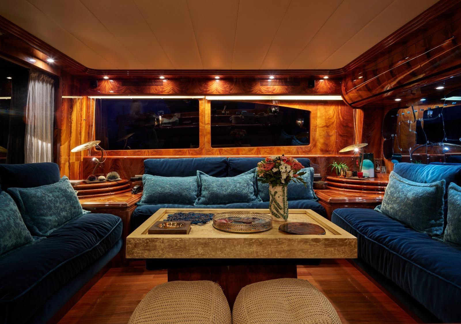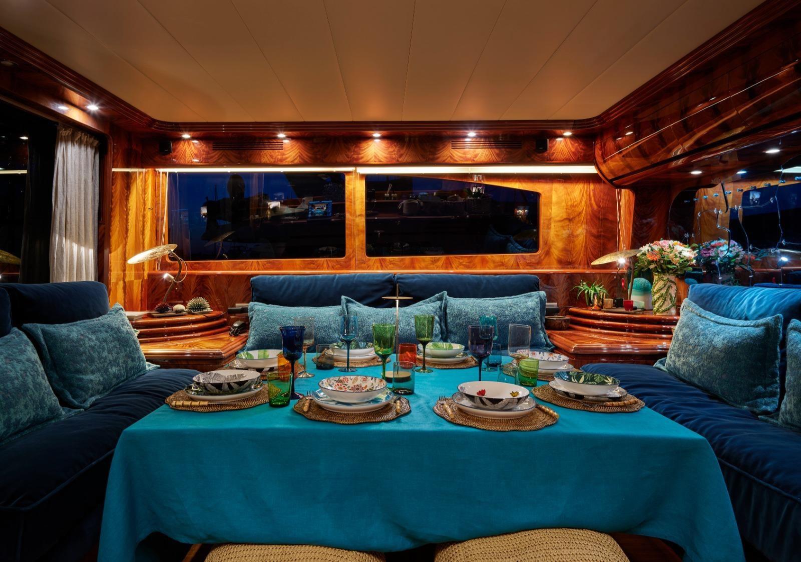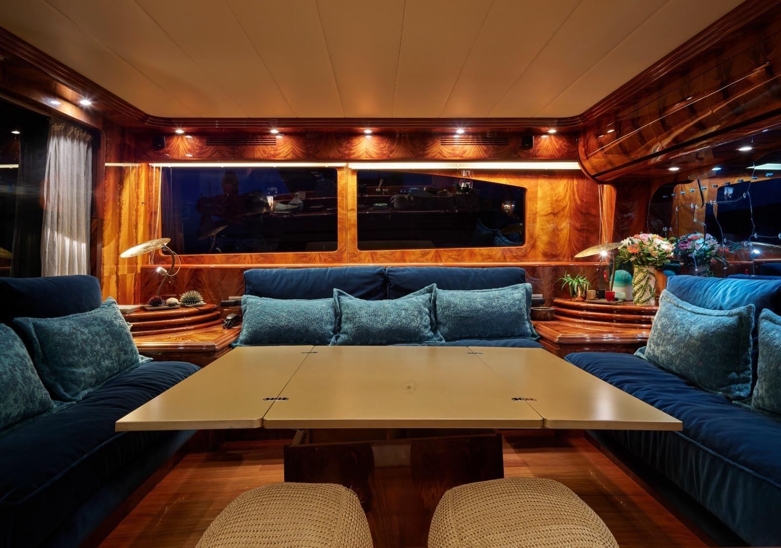 - Remplacement complet de toutes les éponges et de la sellerie extérieure, y compris l’auvent volant et l’auvent arrière