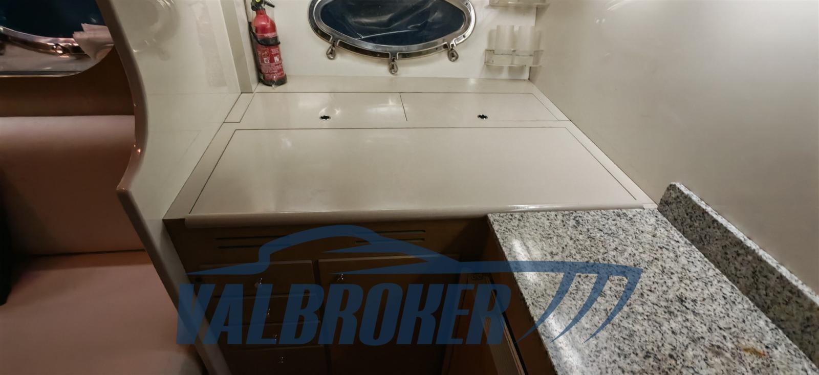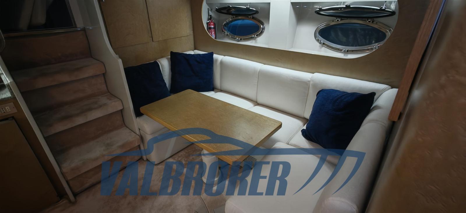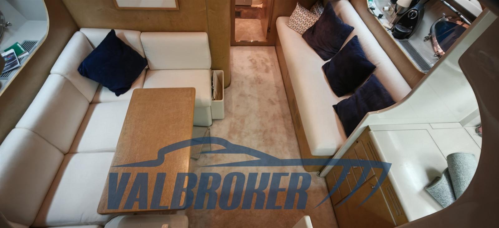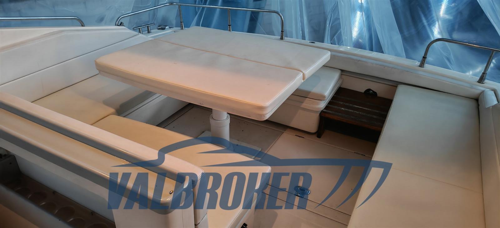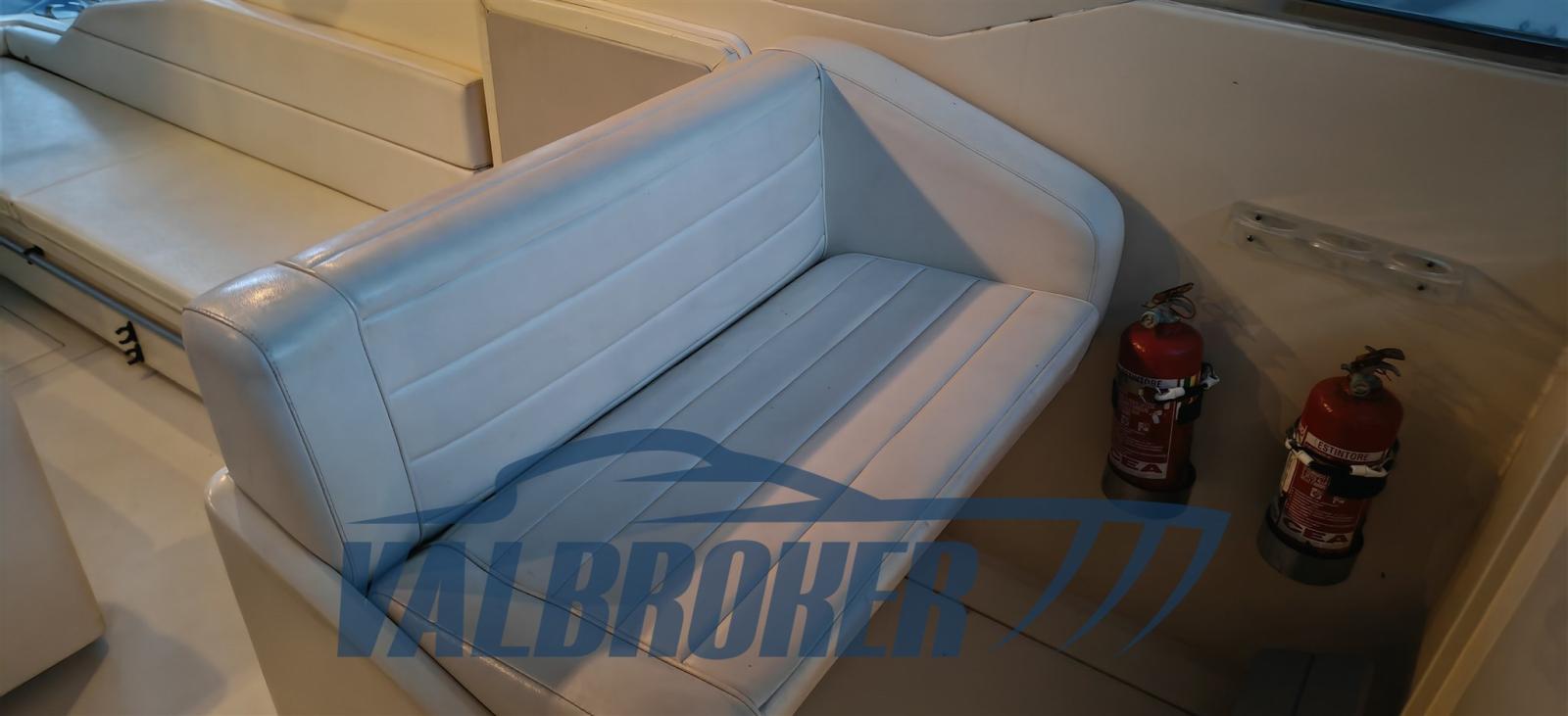 Coque puissante et solide avec de hautes remparts pour protéger le cockpit. Cabine avant et salle de bain séparée, salle à manger décapotable. De nombreuses options sont installées : climatisation, générateur, propulseur d’étrave, radar. Bateau sur la terre ferme pour le stockage hivernal.