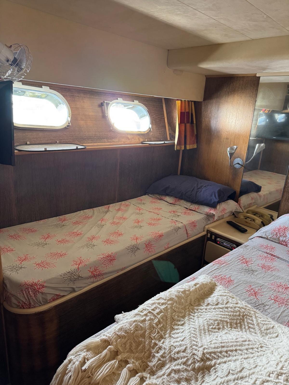 4 cabines doubles - 4 salles de bains avec douches - Cuisine latérale - Cabine d’équipage avec accès par la proue